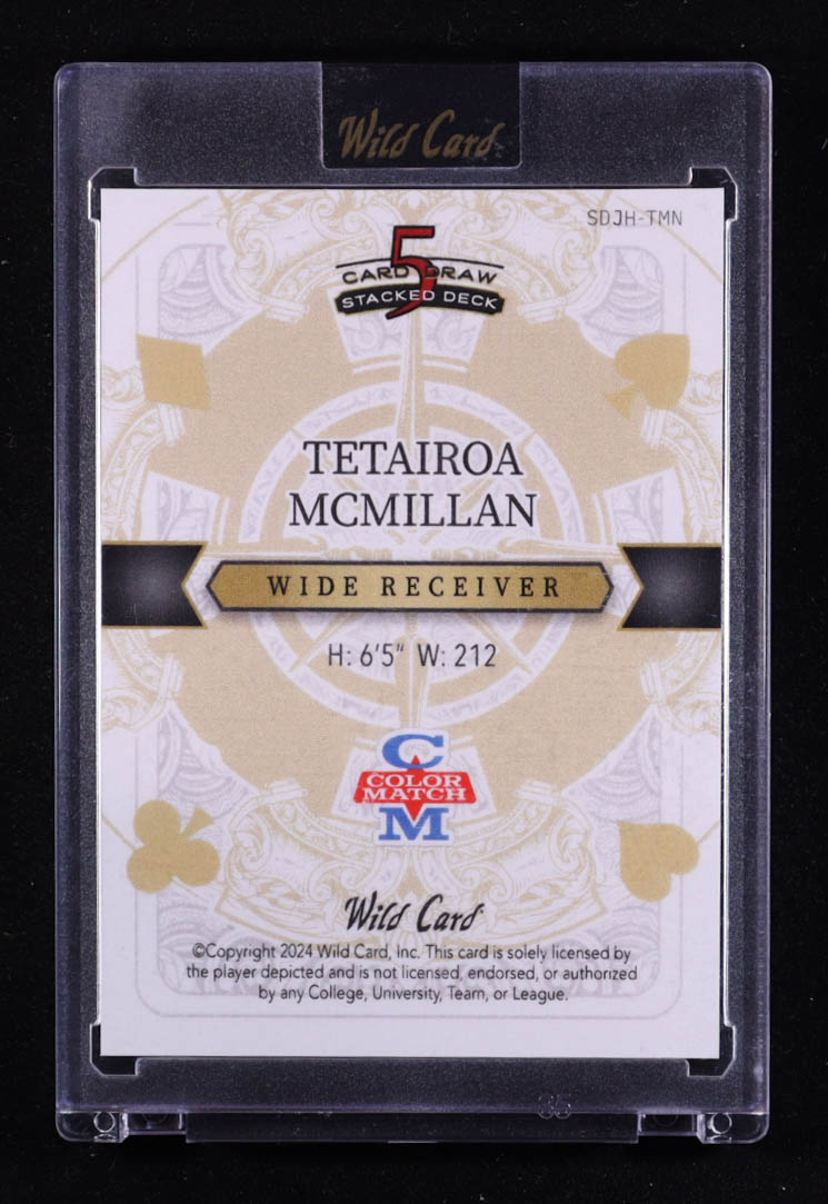 Tetairoa McMillan 2024 Wild Card 5 Card Draw Stacked Deck Jack Of Hearts Color Match Lazer #SDJH-TMN #1/1 RC