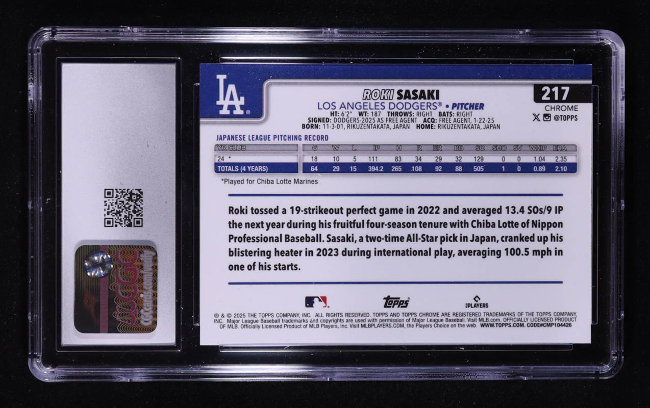 Roki Sasaki 2025 Topps Chrome #217 RC (CGC 10)