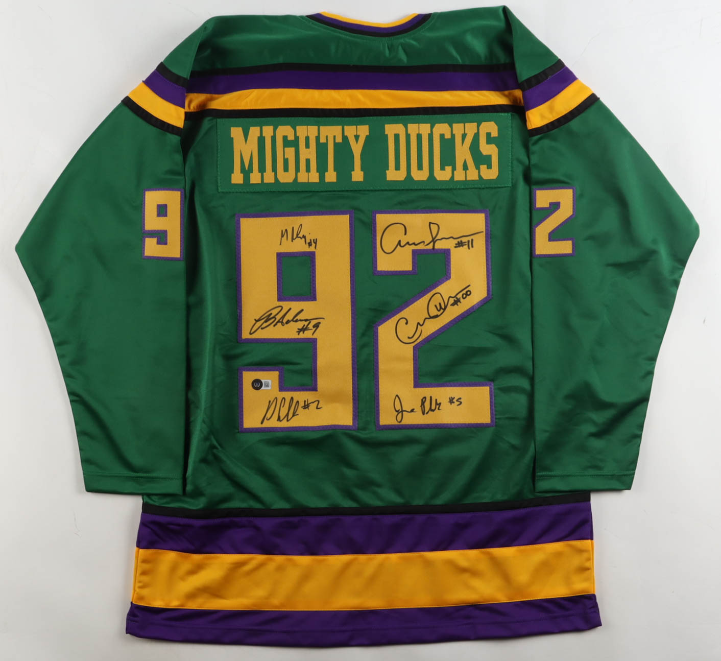 "The Mighty Ducks" Cast-Signed Jersey by (6) with Brandon Adams, Danny Tamberelli, Aaron Schwartz, Jane Plank (Beckett)