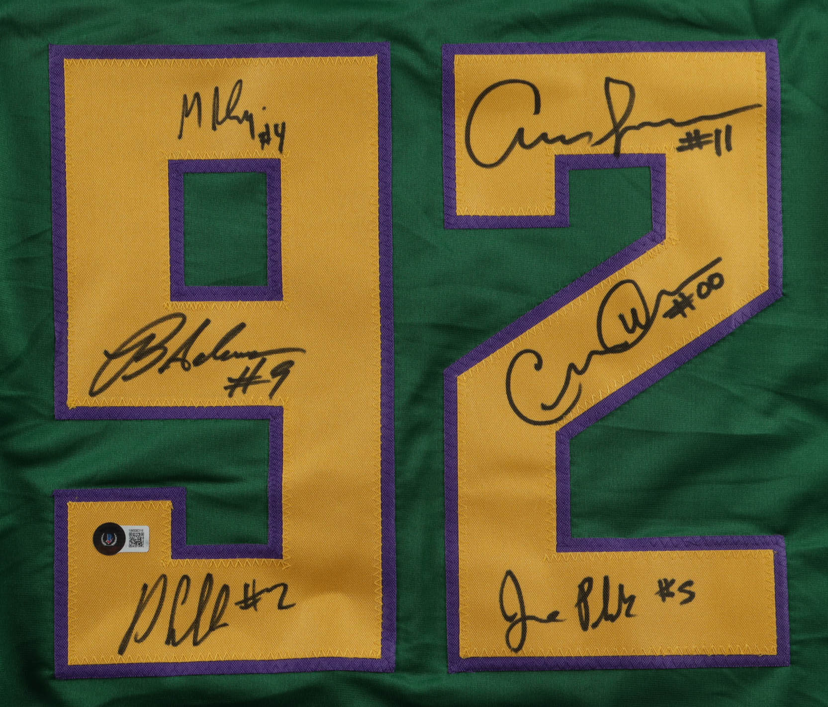Custom jersey with everything sewn on, size XL. Has been hand-signed by (6) including Brandon Adams (Jesse Hall), Danny Tamberelli (Tommy Duncan), Aaron Schwartz (Dave Karp), Jane Plank (Tammy Duncan), Matt Doherty (Lester Averman), and Garette Henson (Guy Germaine).