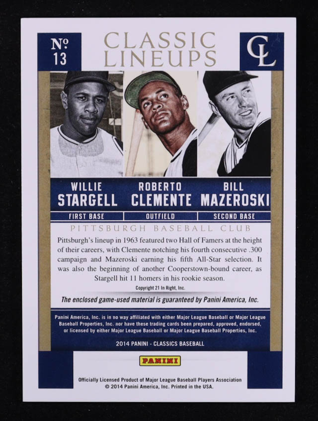 Bill Mazeroski / Roberto Clemente / Willie Stargell 2014 Classics Classic Triples Bats #14/99