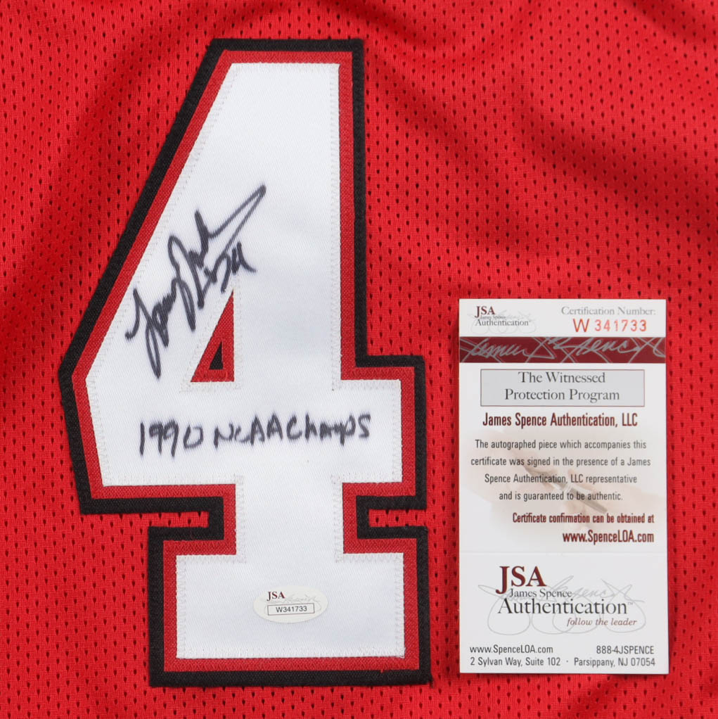 Larry Johnson Signed Jersey Inscribed "1990 NCAA Champs" (JSA)