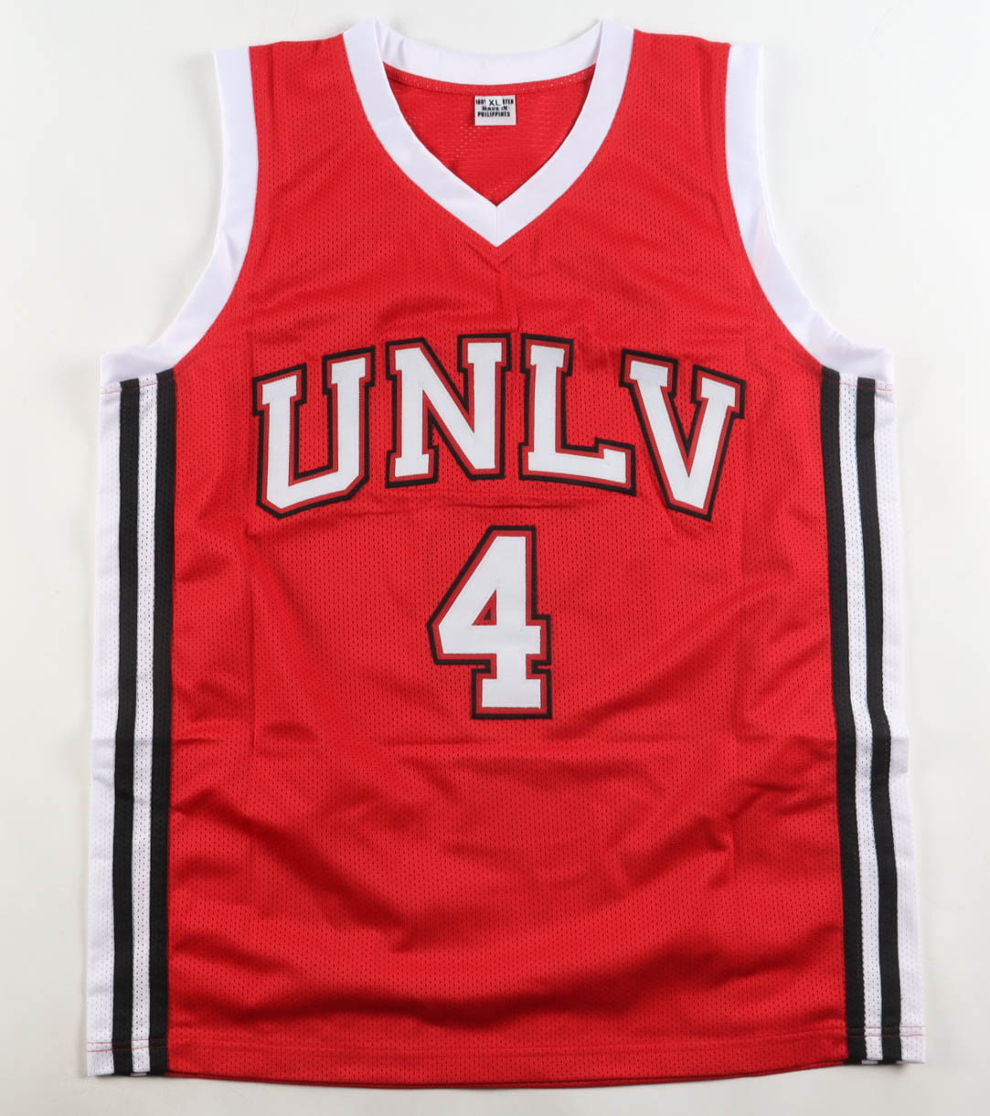 Custom jersey with everything sewn on, size XL. Hand-signed and inscribed by Larry Johnson (UNLV Runnin' Rebels). Please note, the signature and inscription have bled.
