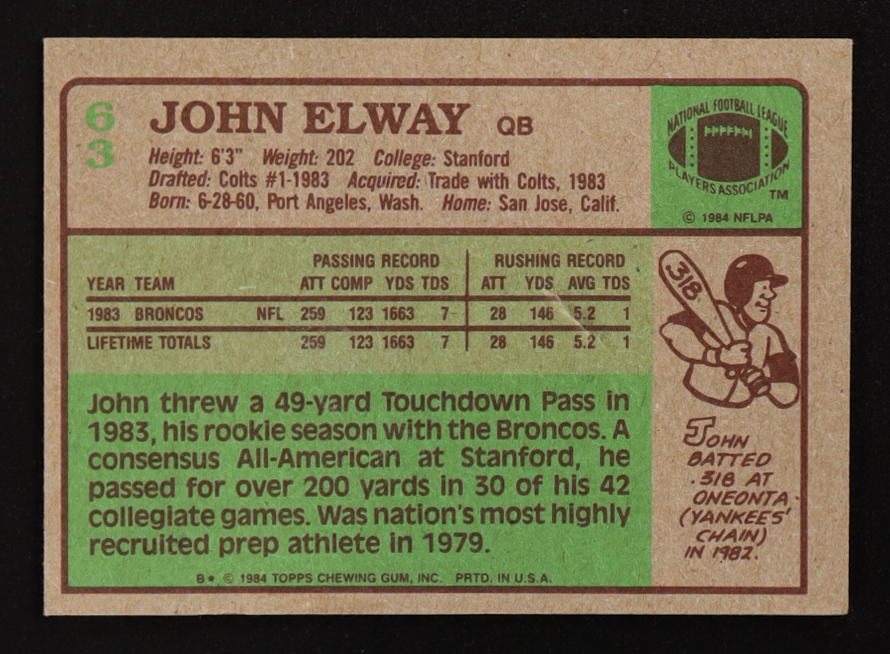 John Elway 1984 Topps #63 RC