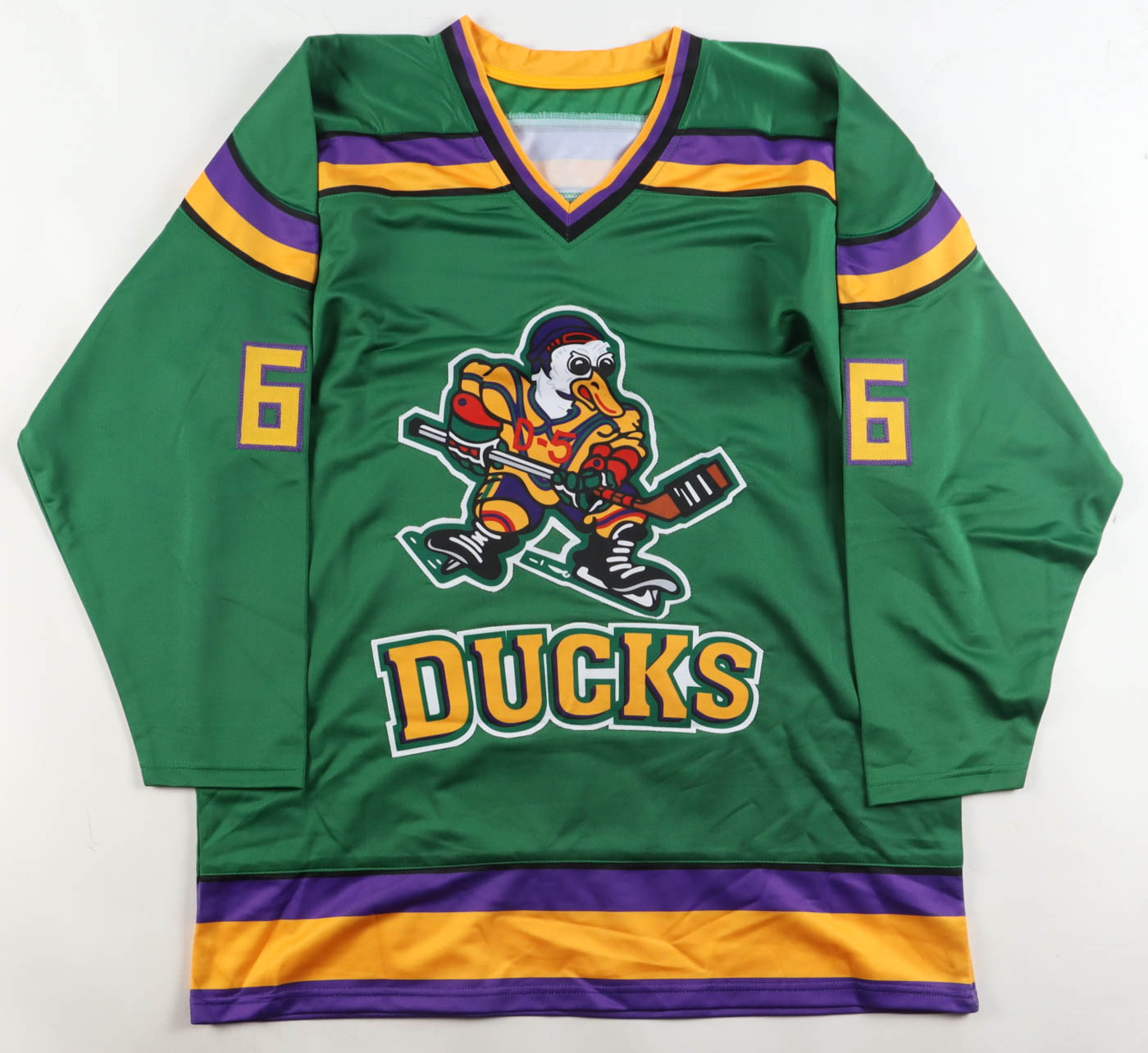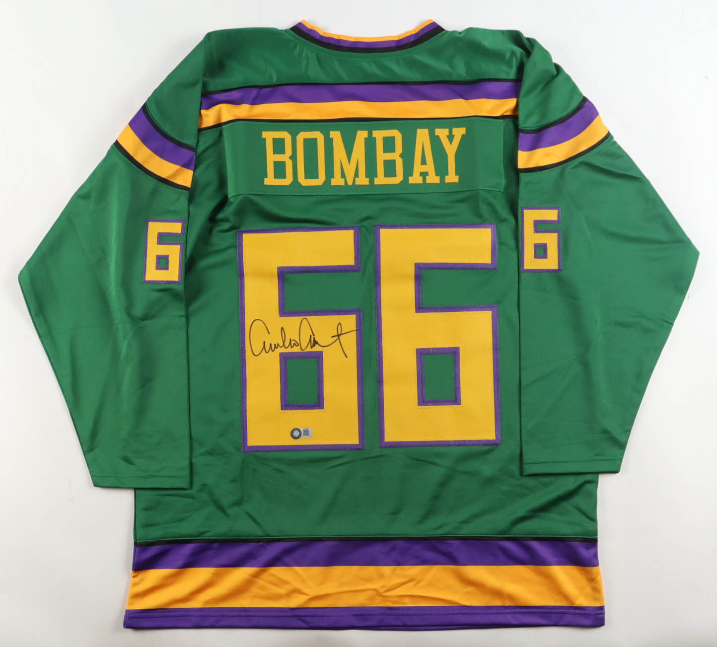 Custom jersey with everything sewn on, size XL. Hand-signed by Emilio Estevez (Gordon Bombay).