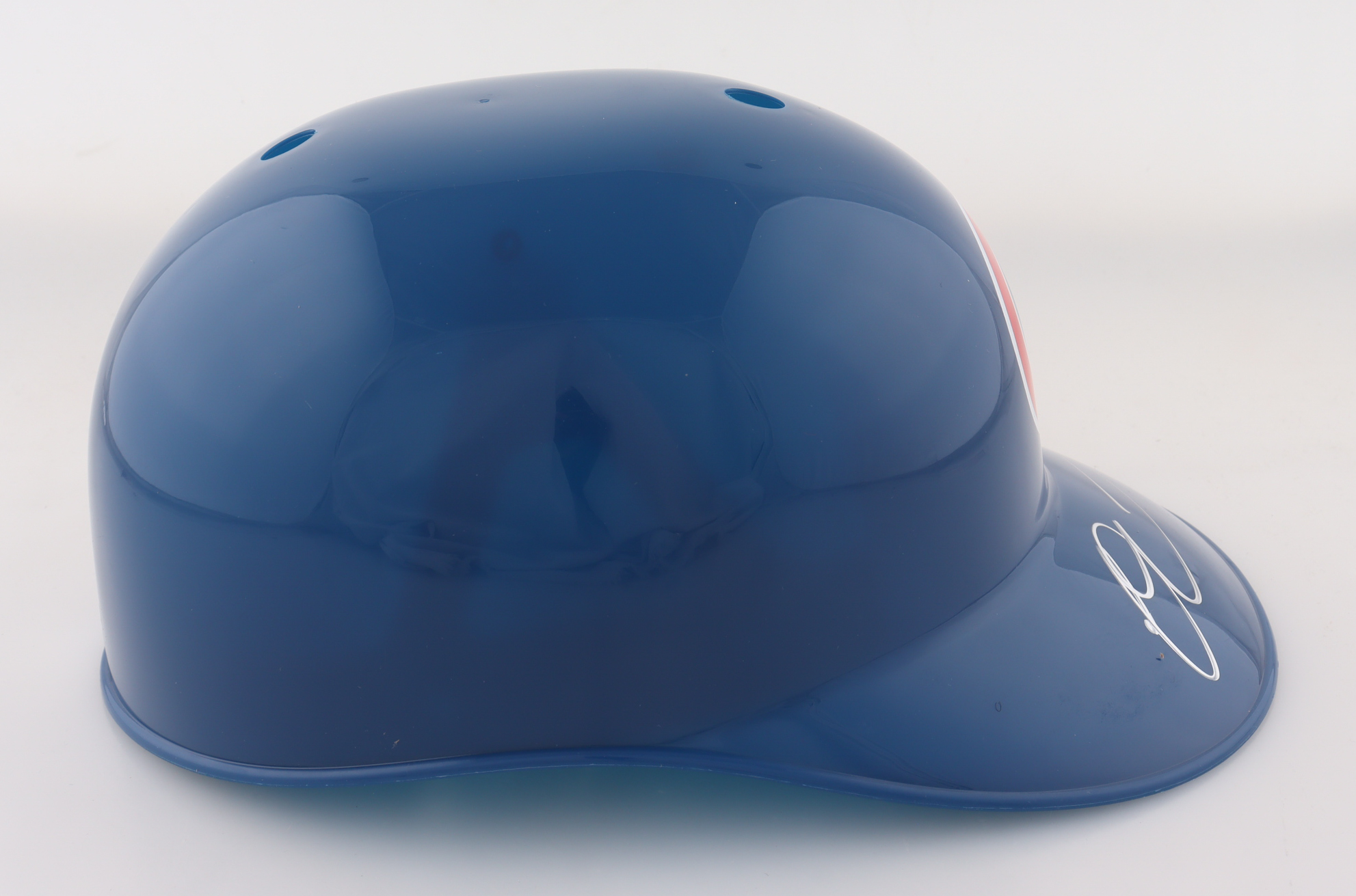 Chicago Cubs full-size replica plastic souvenir batting helmet. Hand-signed by Owen Caissie.