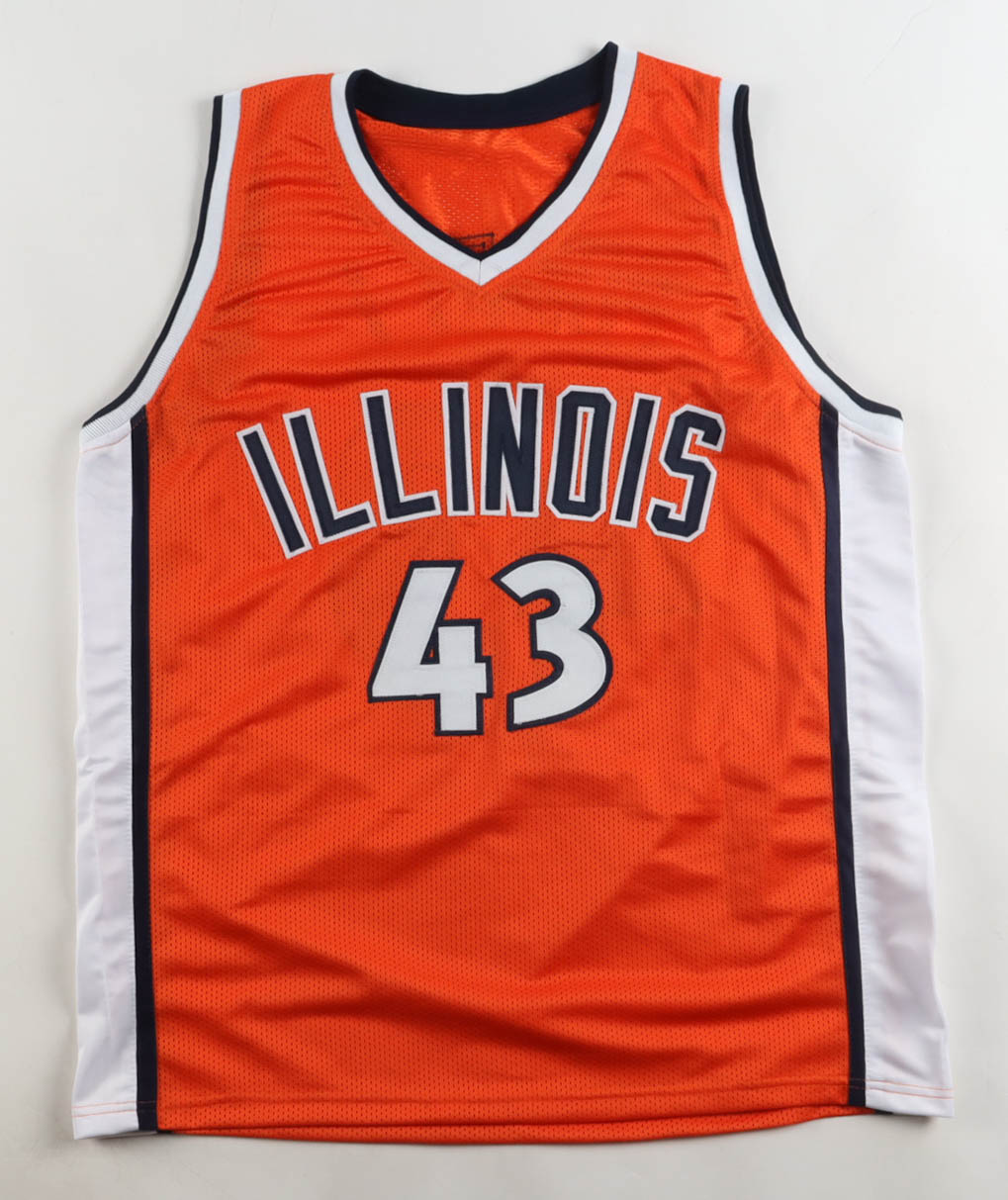 Custom jersey with everything sewn on, size XL. Hand-signed and inscribed by Roger Powell Jr. (Illinois Fighting Illini)