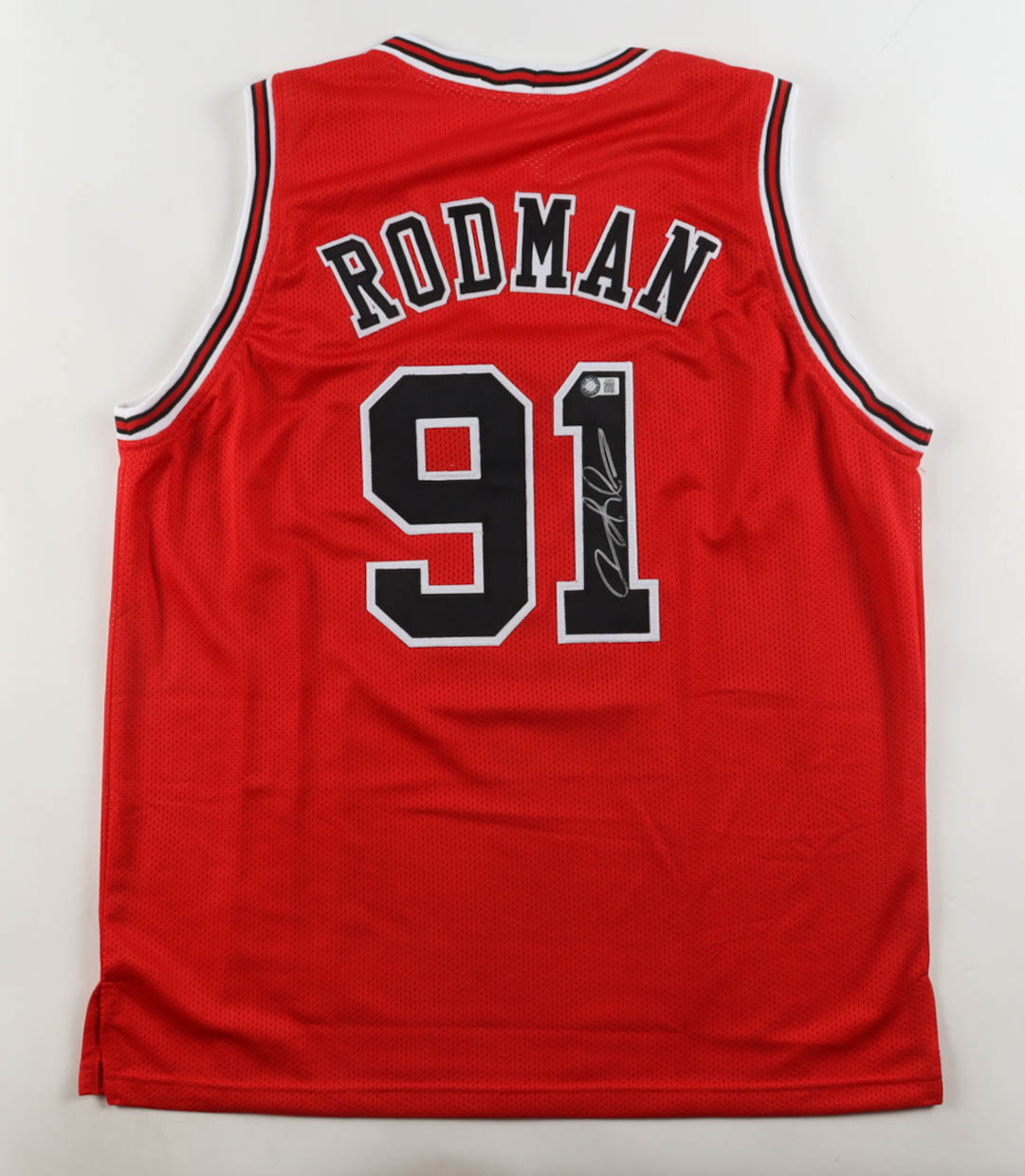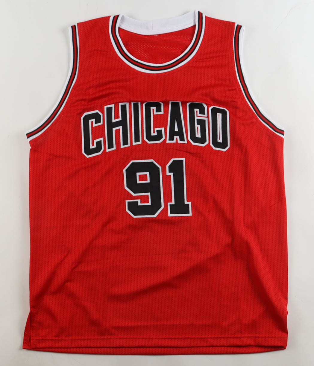 Custom jersey with everything sewn on, size XL. Hand-signed by Dennis Rodman (HOF).