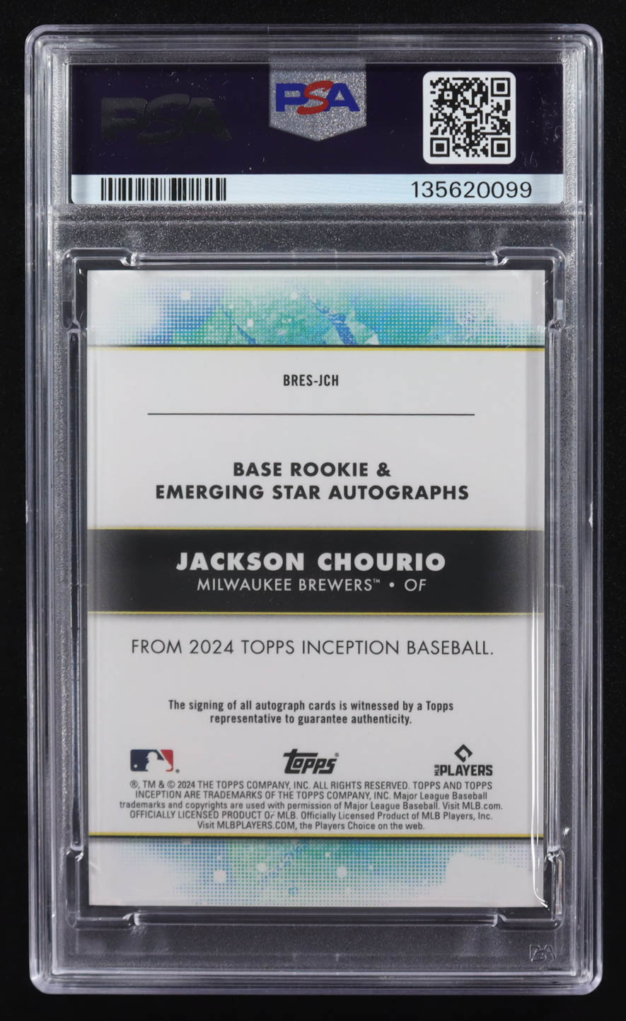 Jackson Chourio 2024 Topps Inception Rookie and Emerging Stars Autographs Orange #BRESJCH #25/25 RC (PSA 7)