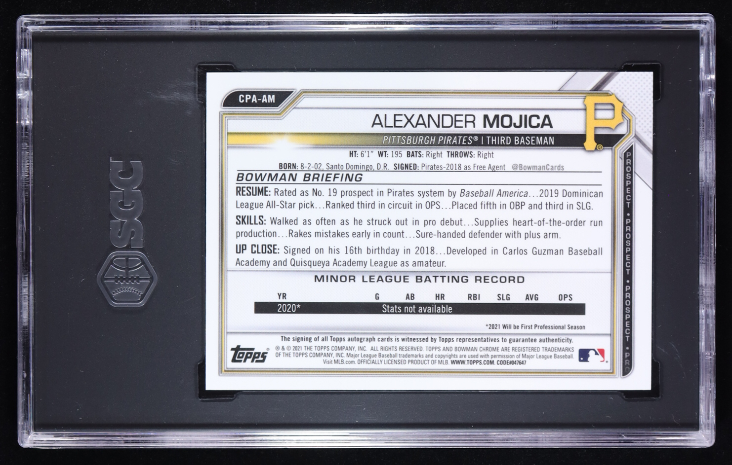 Alexander Mojica 2021 Bowman Chrome Prospect Autographs #CPAAM (SGC 10)