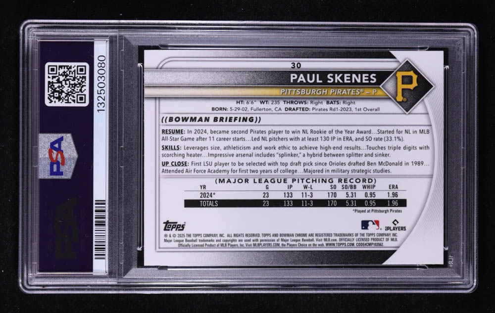 Paul Skenes 2025 Bowman Chrome Mega Box #30 (PSA 10)
