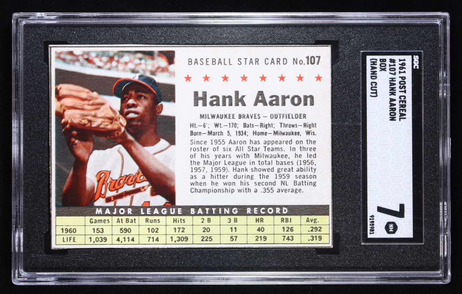 Hank Aaron 1961 Post #107B Box (SGC 7)