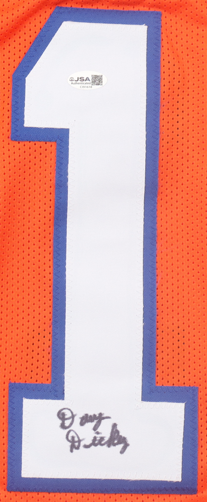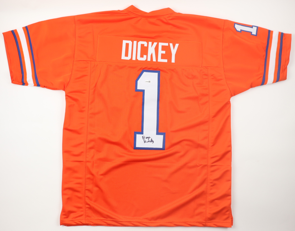 Custom jersey with everything sewn on, size XL. Hand-signed by Doug Dickey.