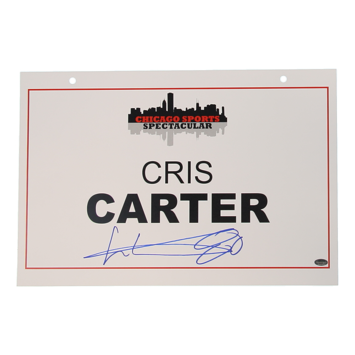 Show sign measures approximately 11" x 17" in size. Hand-signed by Cris Carter (Minnesota Vikings).