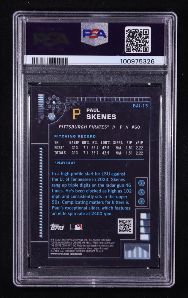 Paul Skenes 2024 Bowman Chrome Bowman AI #BAI15 RC (PSA 10)
