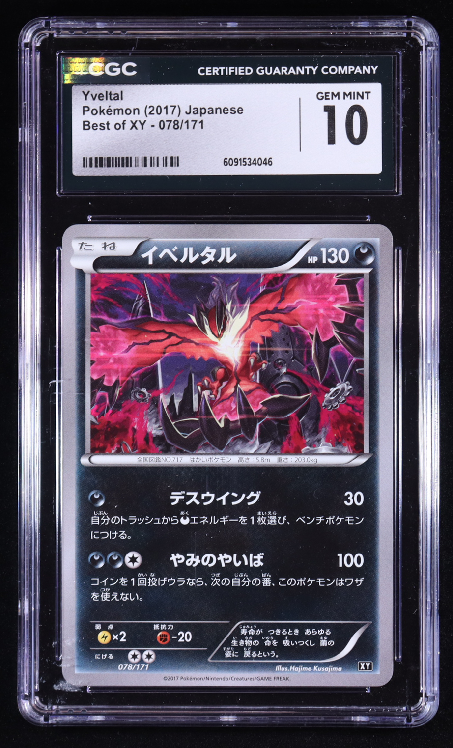 Yveltal 2017 Pokemon The Best of XY Reverse Starlight Foil Japanese #078 (CGC 10)