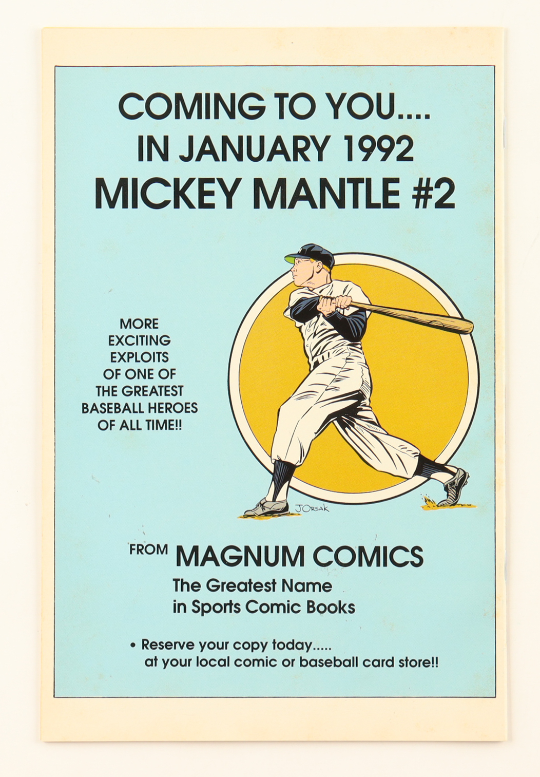 December, 1991 "Mickey Mantle" Issue #1 Magnum comic book. Please see photos for details regarding the condition of the comic.
