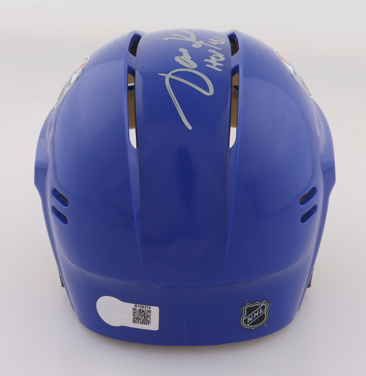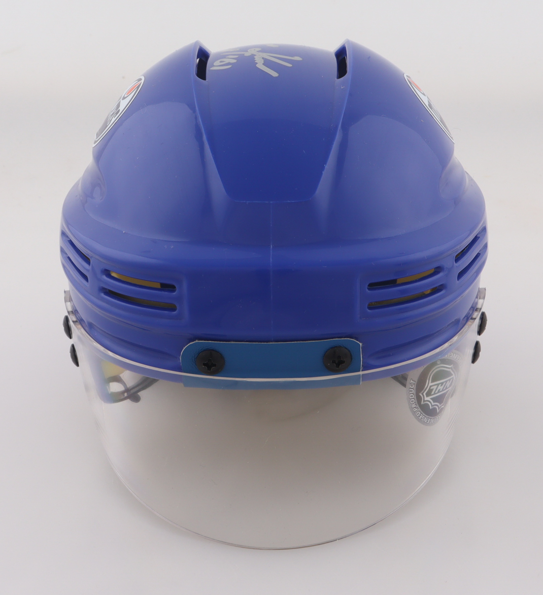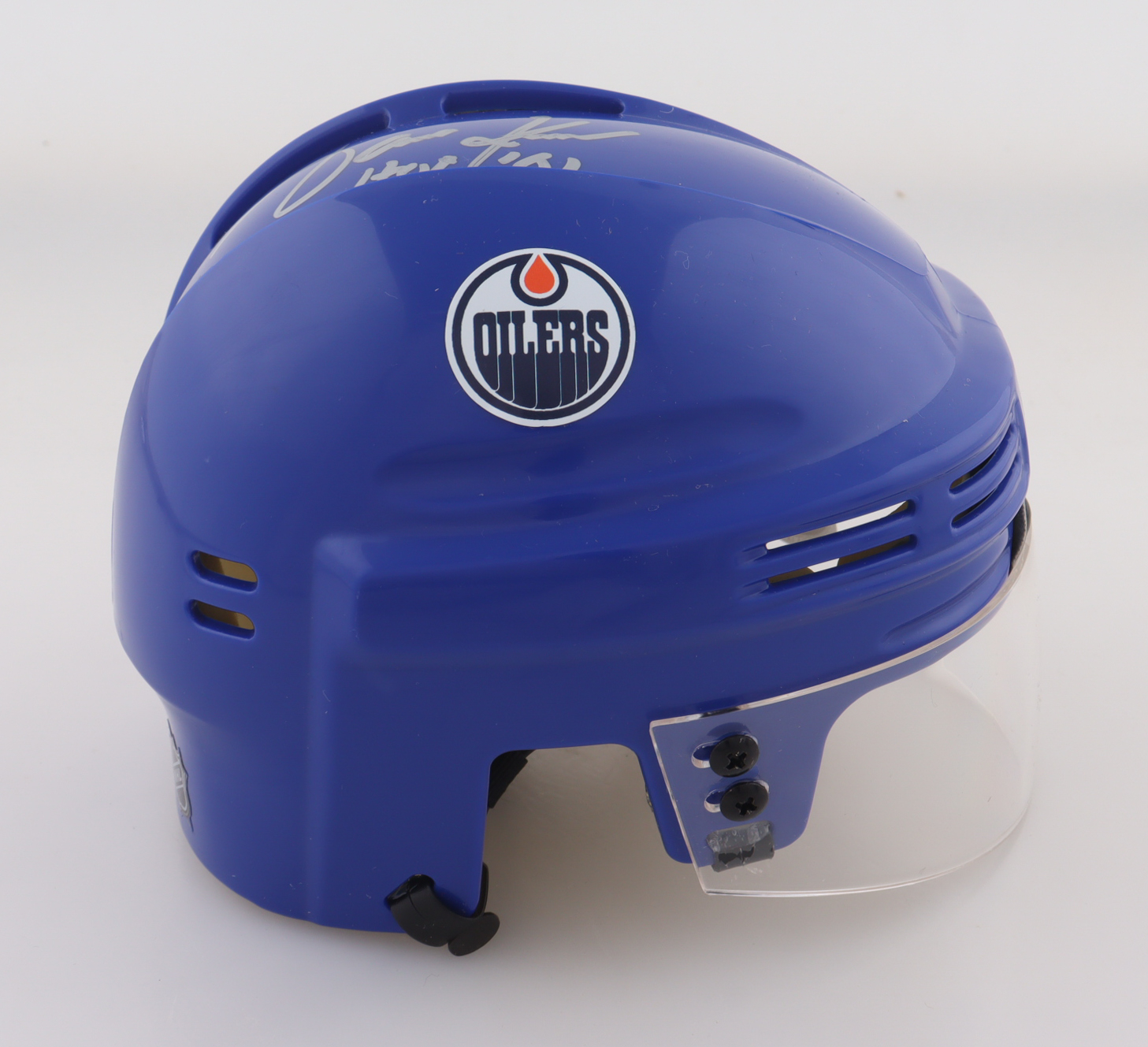 Edmonton Oilers mini helmet has been hand-signed and inscribed by Jari Kurri (HOF).