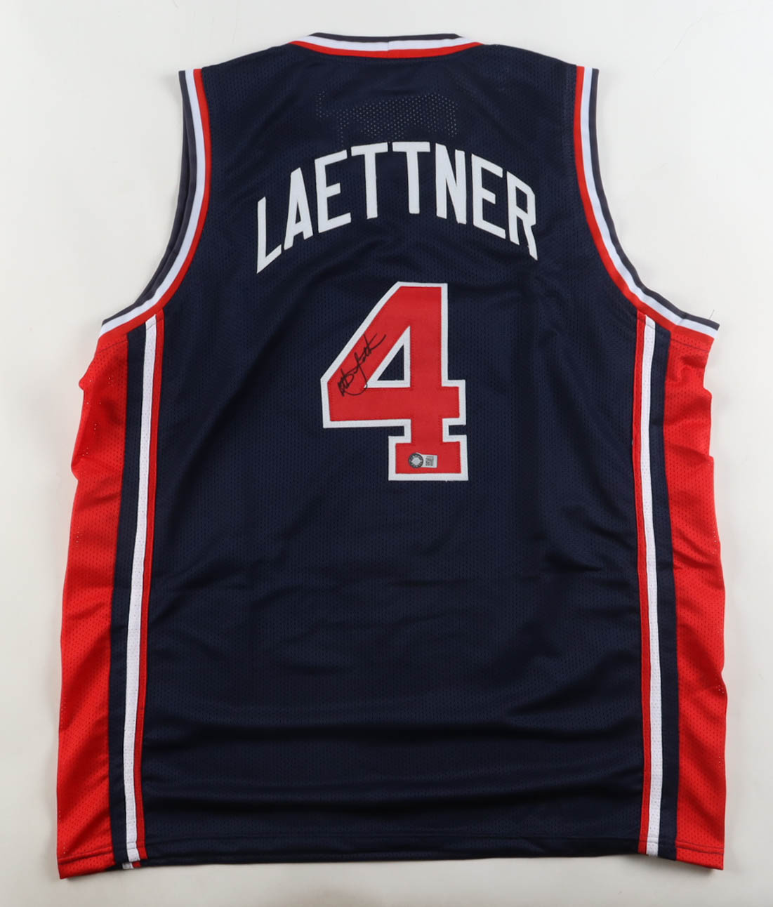 Custom jersey with everything sewn on, size XL. Hand-signed by Christian Laettner.
