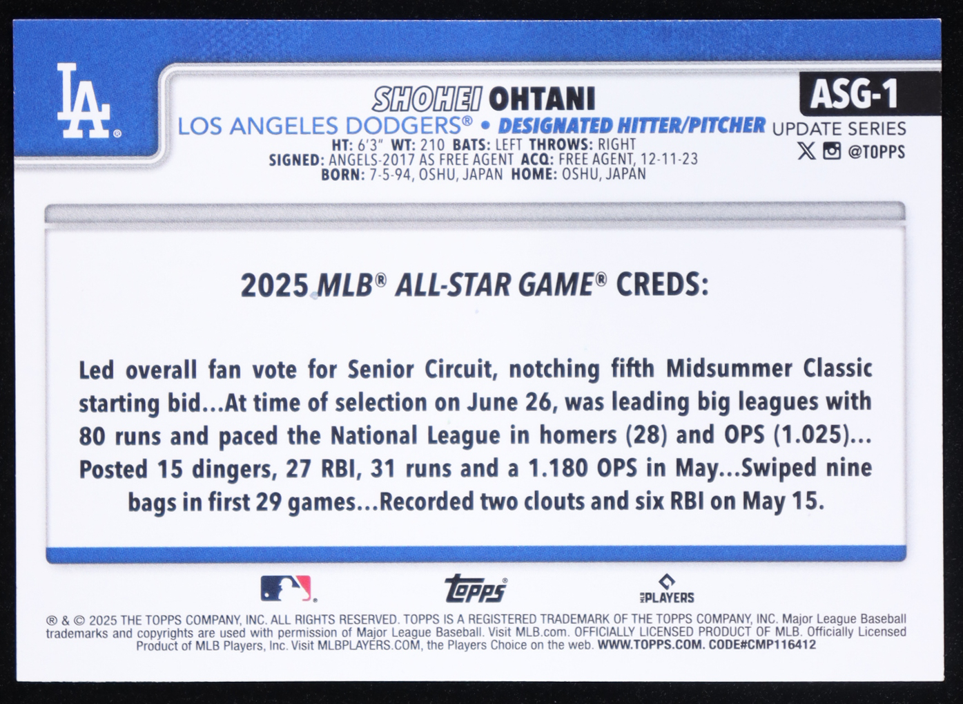 Shohei Ohtani 2025 Topps Update '25 All-Star Game Silver #ASG1