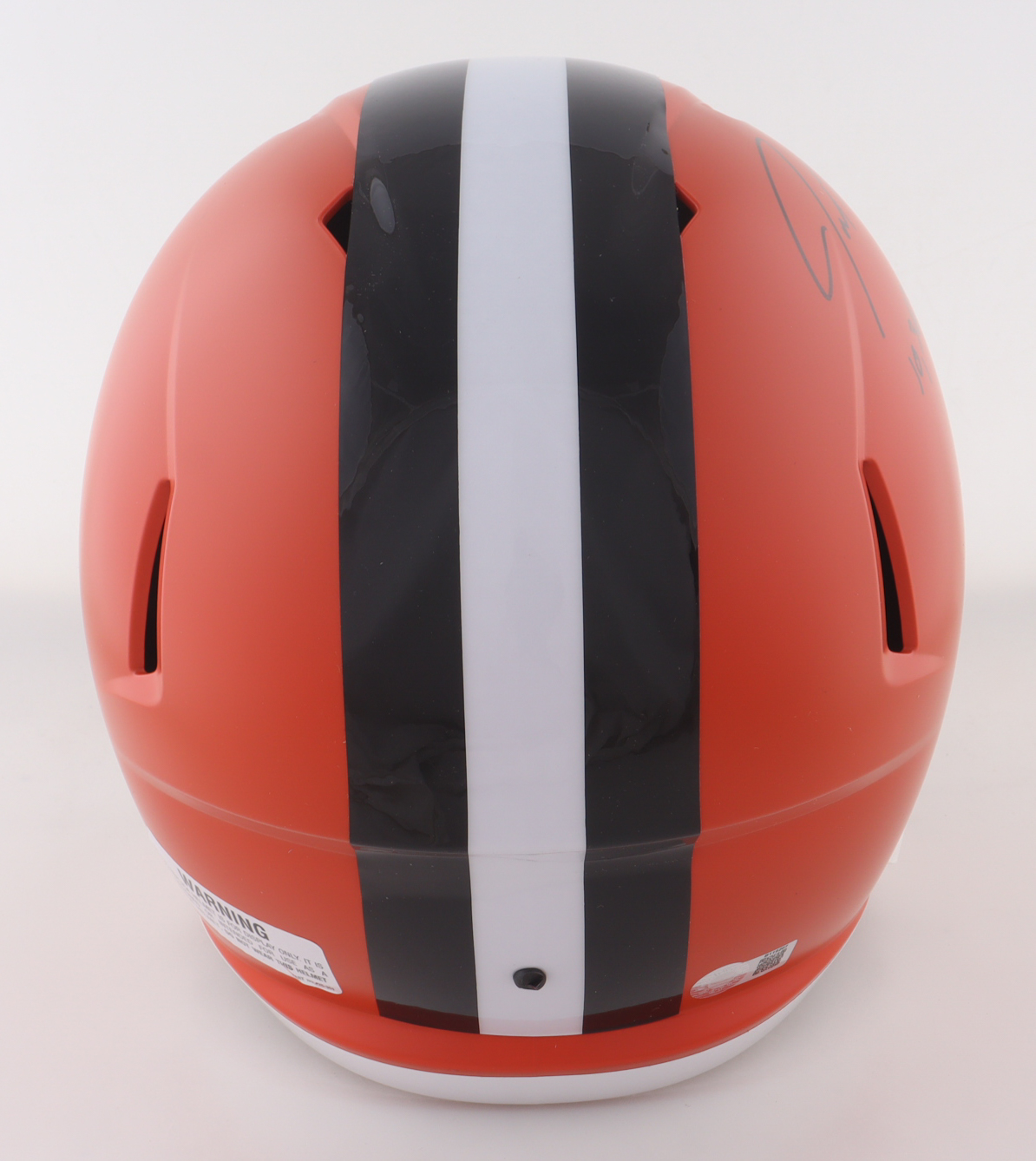 Riddell Cleveland Browns Full-Size Speed Replica Helmet. Hand-signed and inscribed by Joe Thomas (HOF).