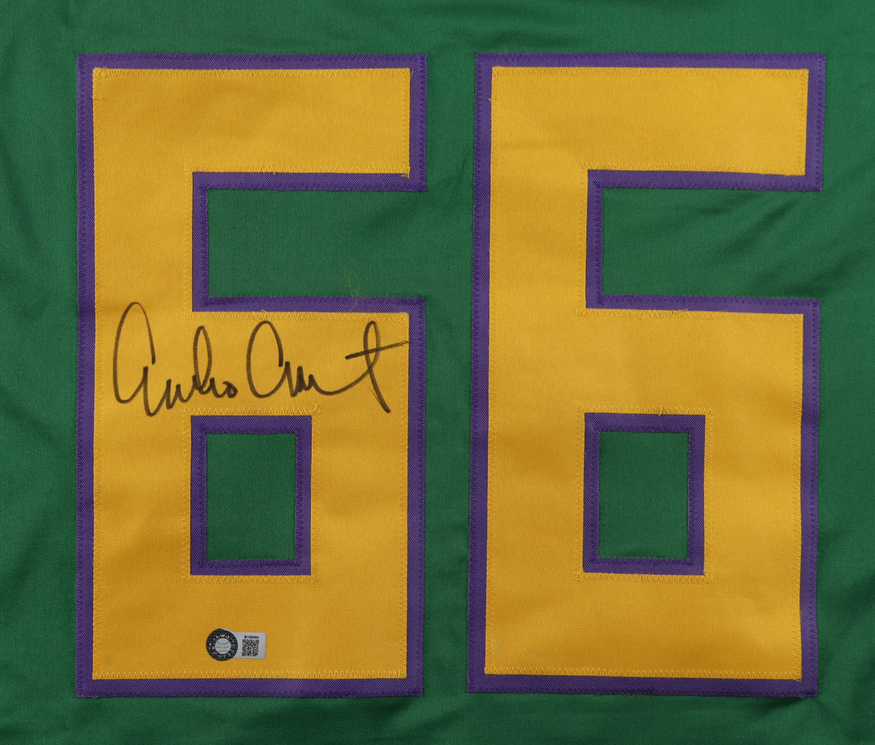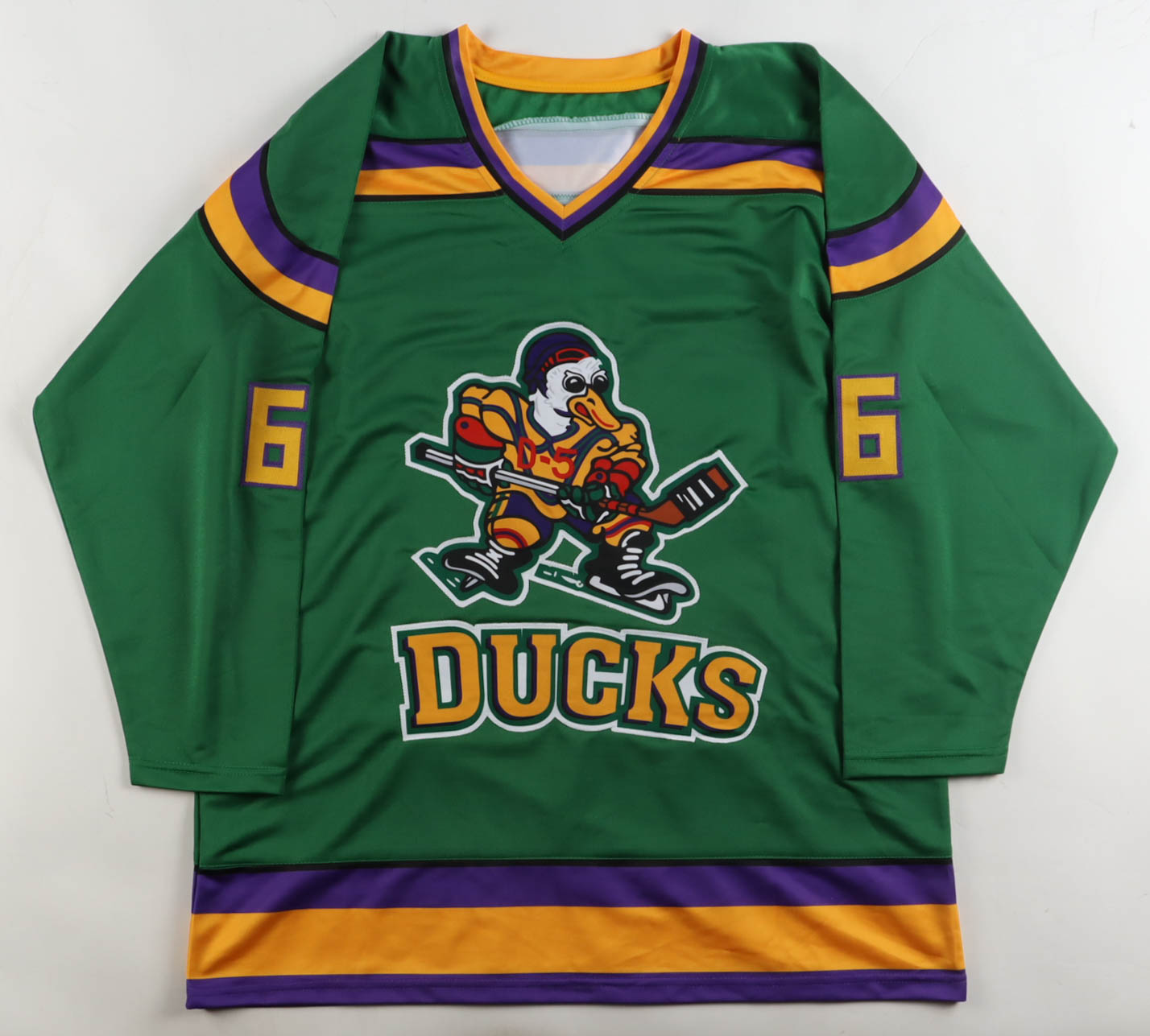 Custom jersey with everything sewn on, size XL. Hand-signed by Emilio Estevez (Gordon Bombay).