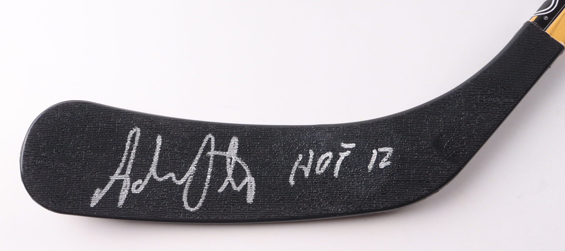 Franklin Boston Bruins 48" hockey stick has been hand-signed and inscribed by Adam Oates (HOF).