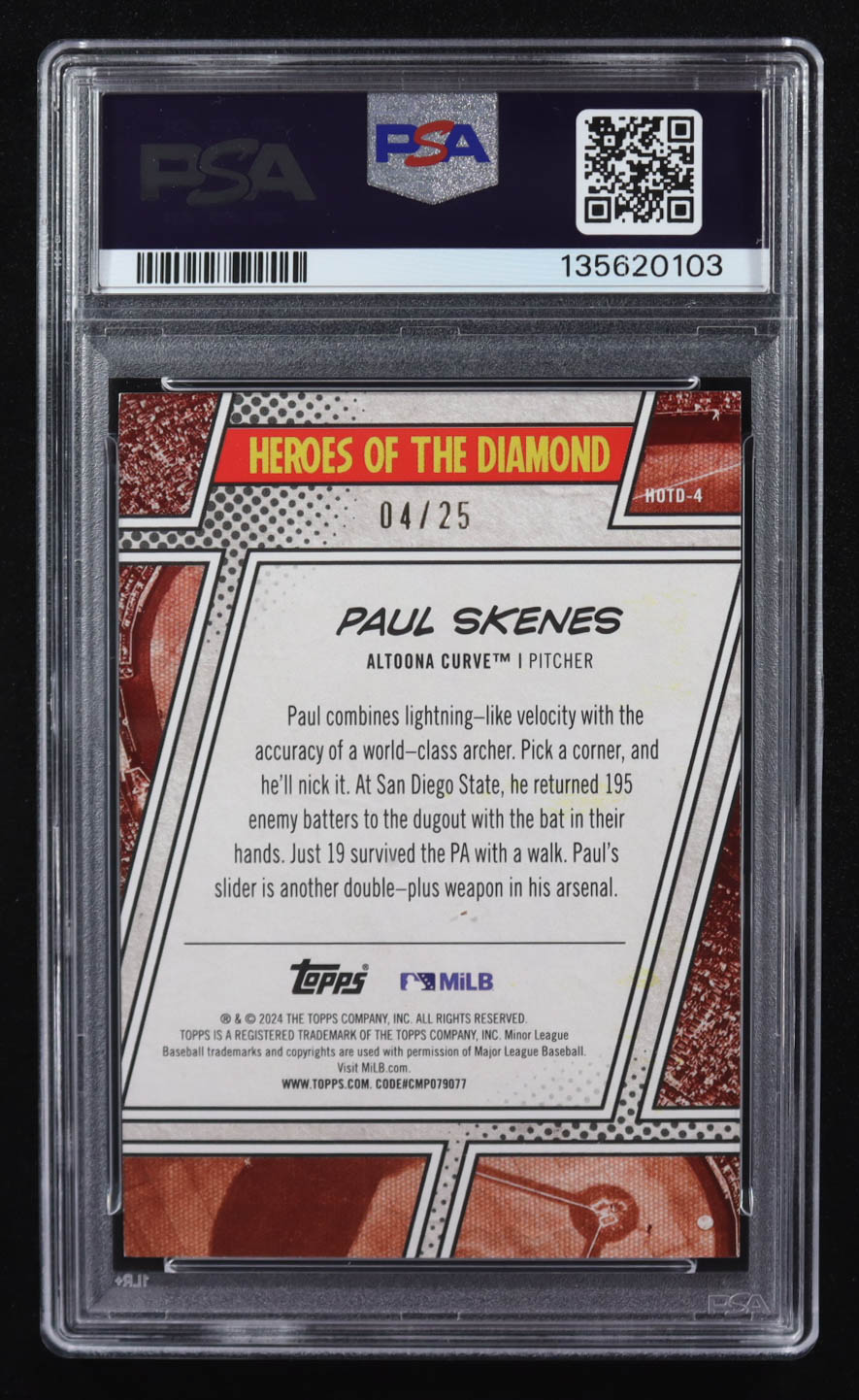 Paul Skenes 2024 Topps Pro Debut Heroes of the Diamond Orange Foil #HOTD4 #04/25 RC (PSA 8)