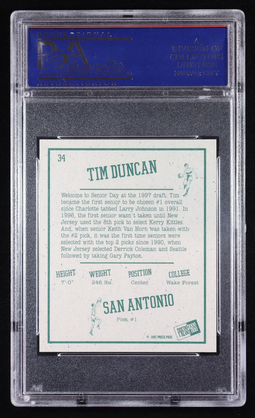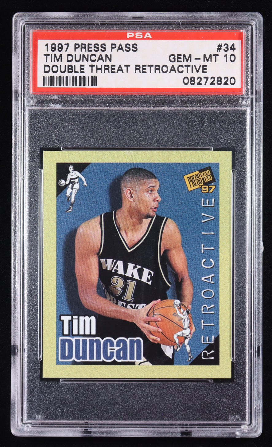 Tim Duncan 1997 Press Pass Double Threat Retroactive #34 RC (PSA 10)
