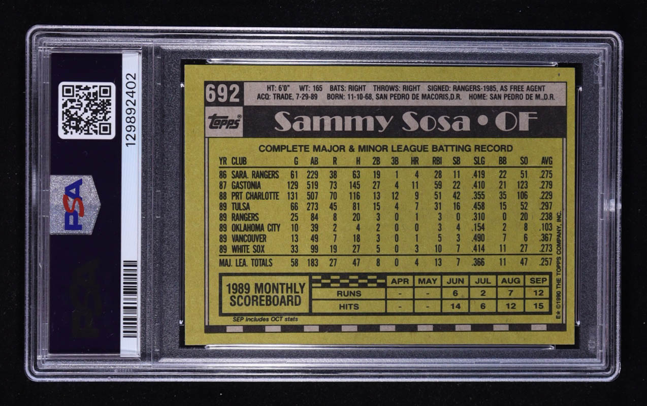 Sammy Sosa Signed 1990 Topps #692 RC (PSA 8 | Autograph Graded PSA 10)