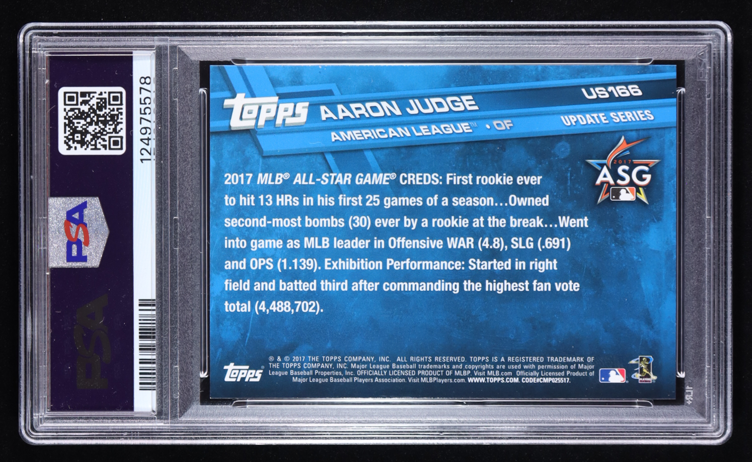 Aaron Judge 2017 Topps Update #US166A AS RC (PSA 9)