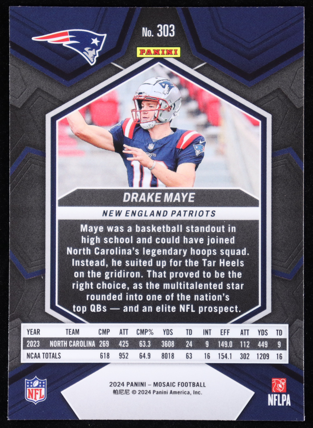 Drake Maye 2024 Panini Mosaic #303 RC