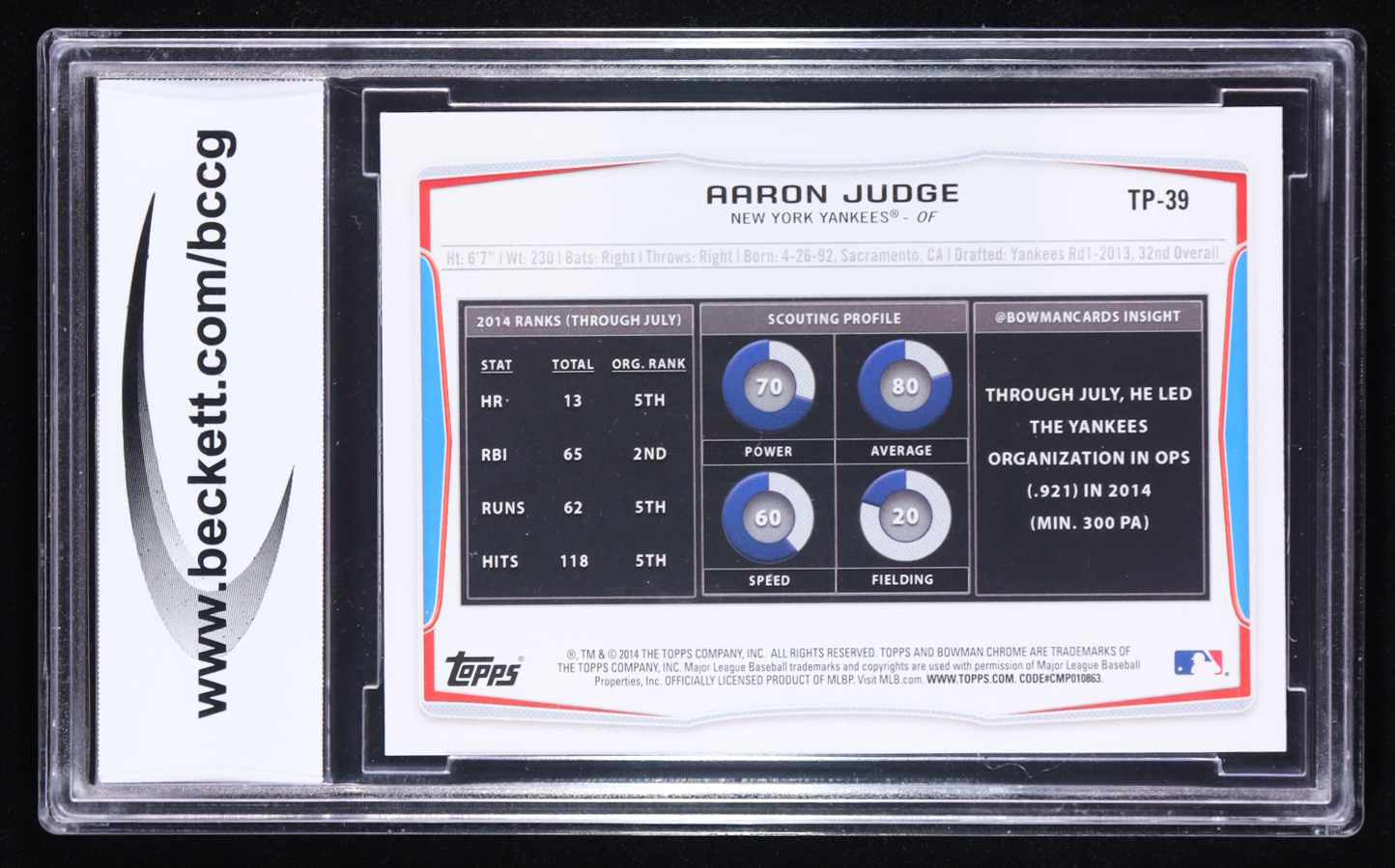 Aaron Judge 2014 Bowman Draft Top Prospects #TP39 (BCCG 10)