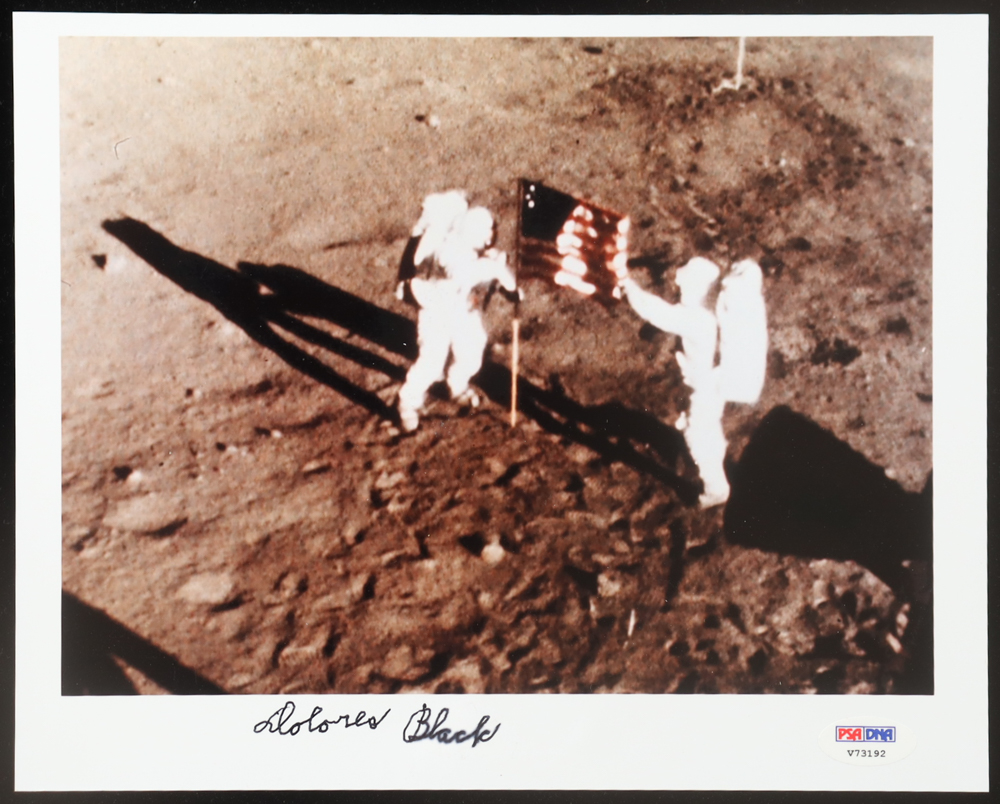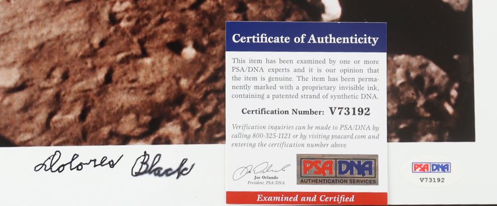 Photo measures 8" x 10" in size and has been hand-signed by Dolores Black (D. 2015). Please note, the signature has bled.
