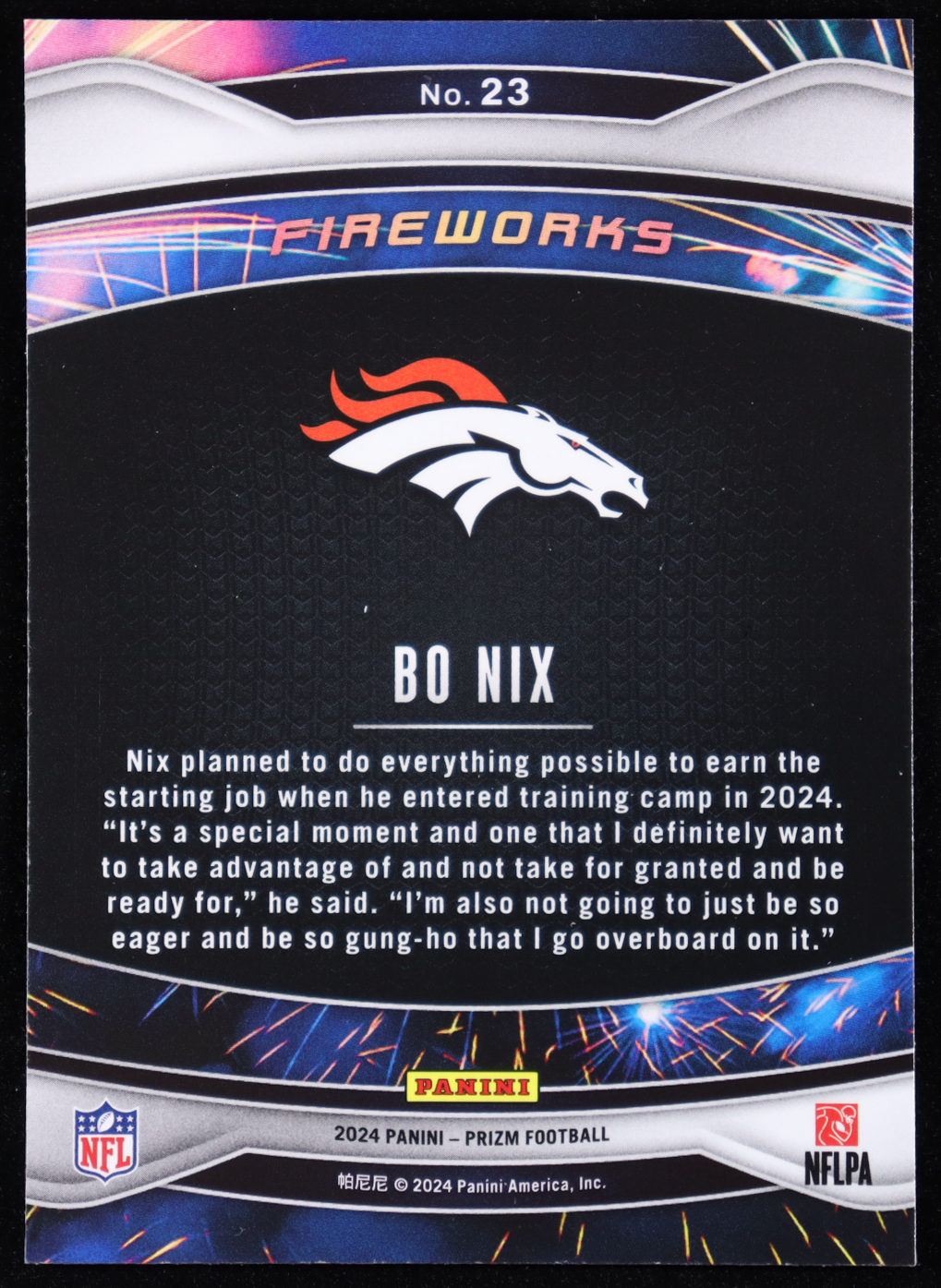 Bo Nix 2024 Panini Prizm Fireworks #23 RC