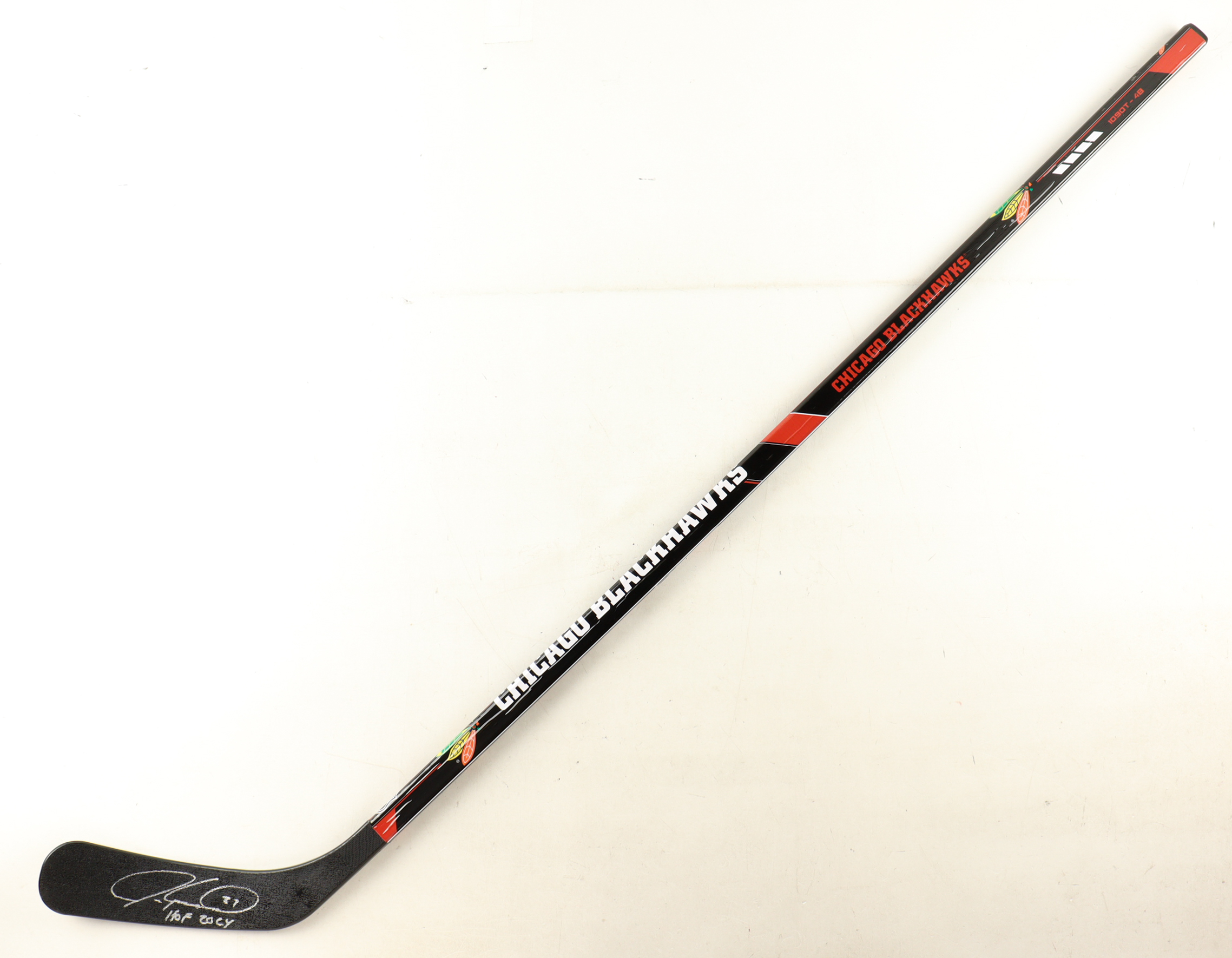 Franklin Chicago Blackhawks 48" hockey stick has been hand-signed and inscribed by Jeremy Roenick (HOF).