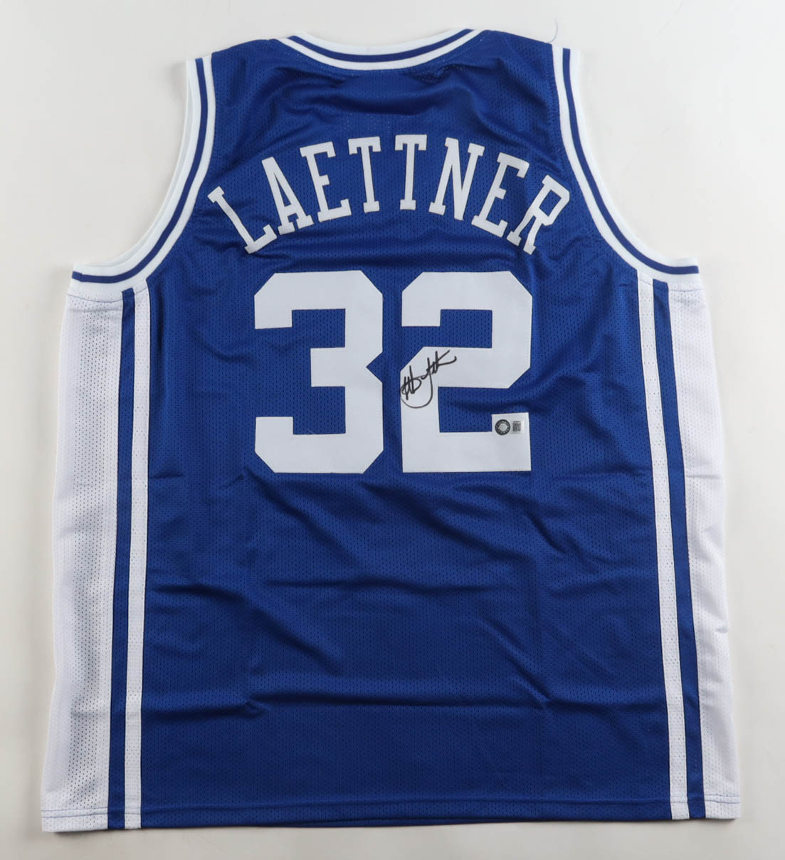 Custom jersey with everything sewn on, size XL. Hand-signed by Christian Laettner.