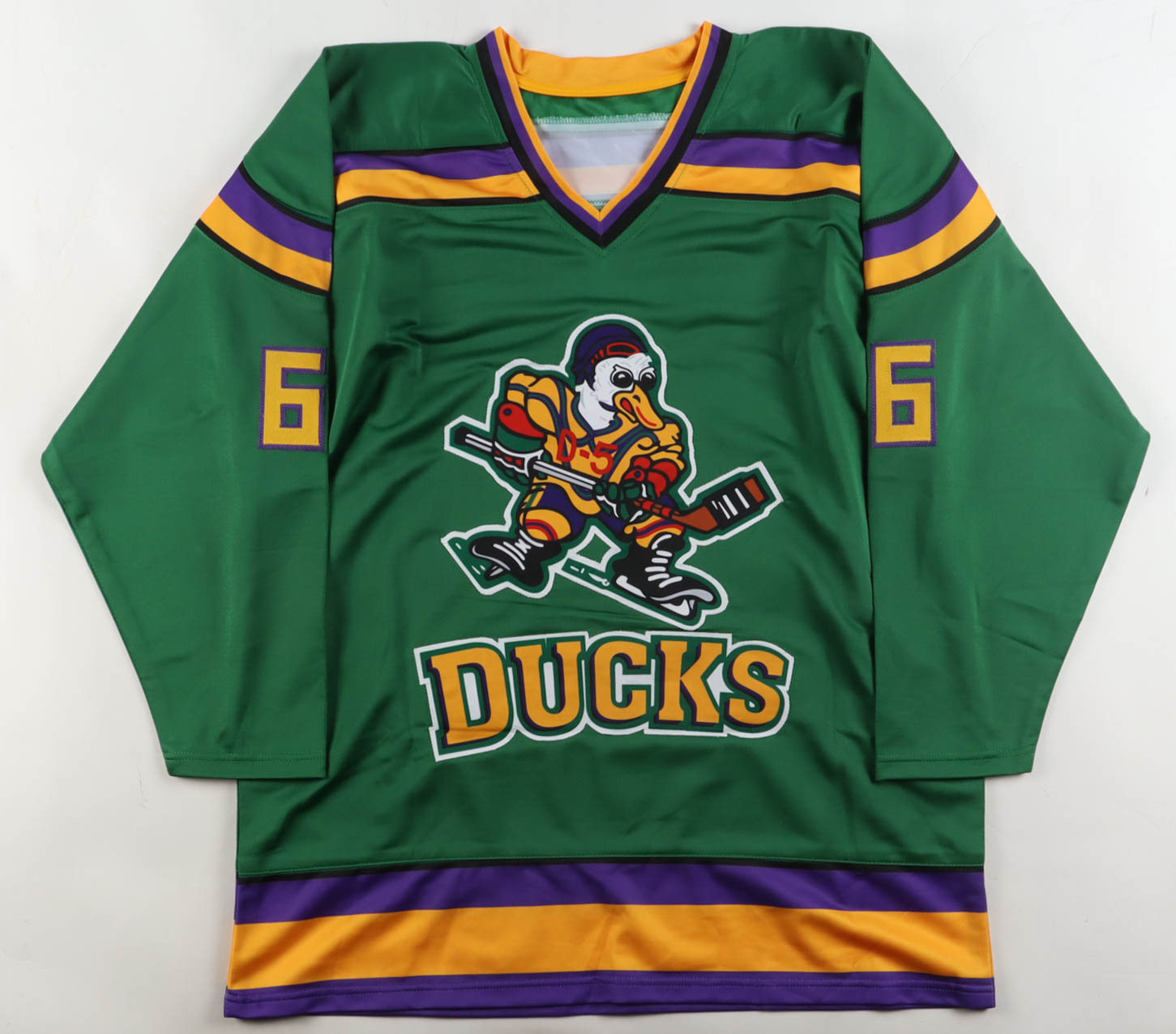 Custom jersey with everything sewn on, size XL. Hand-signed by Emilio Estevez (Gordon Bombay).