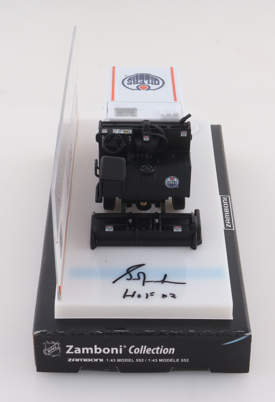 Edmonton Oilers Mini Zamboni has been hand-signed and inscribed on the base by Grant Fuhr (HOF).