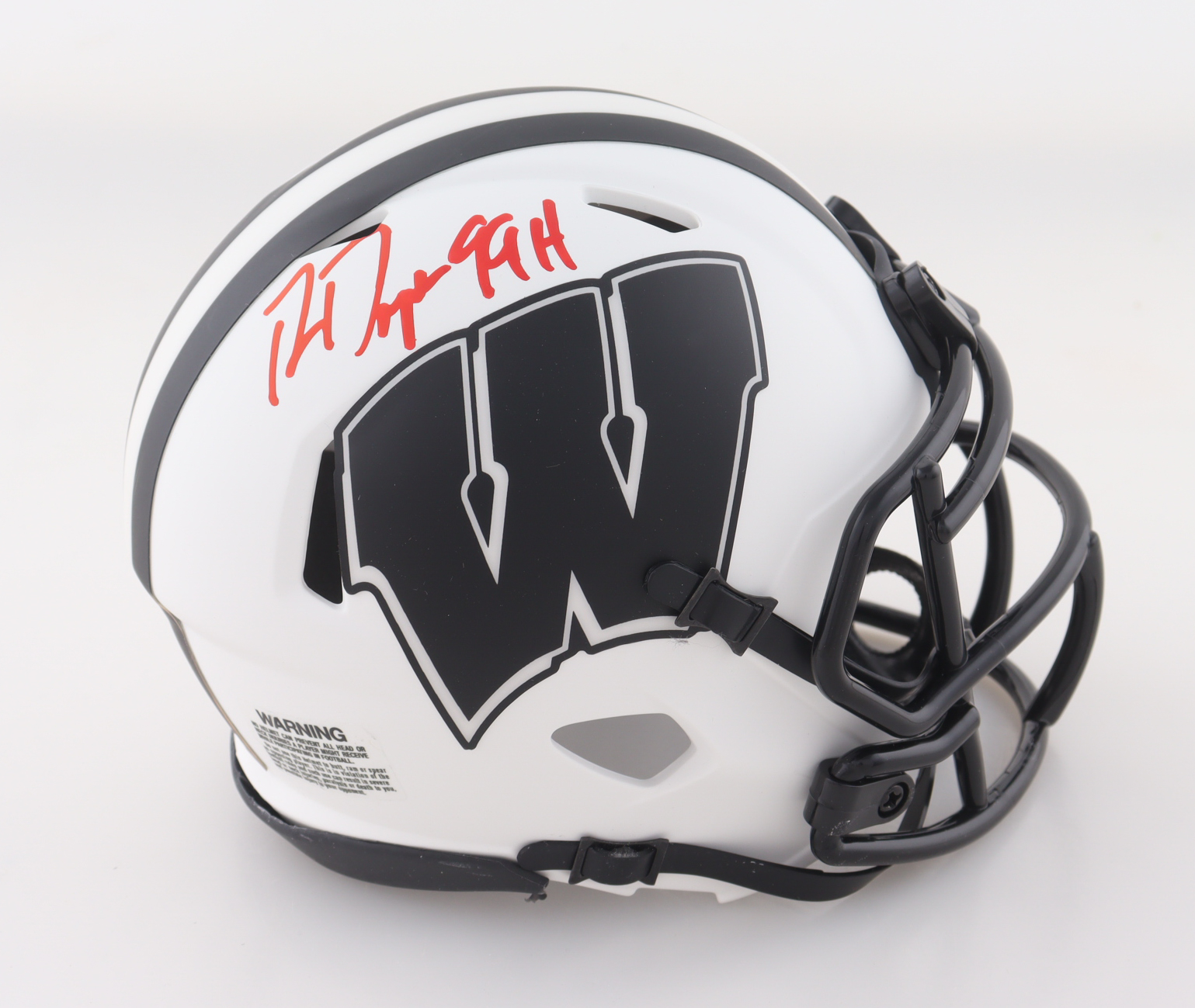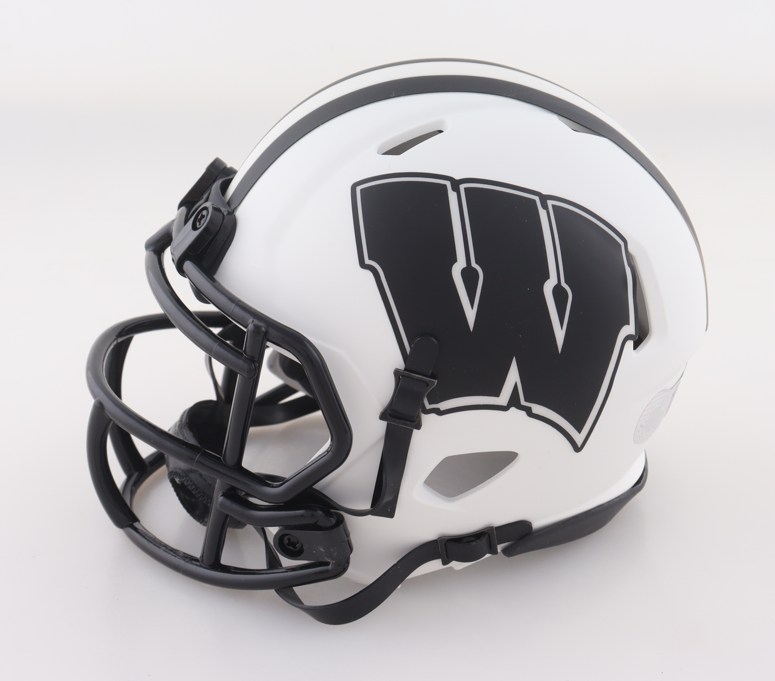 Riddell Wisconsin Badgers Lunar Eclipse Alternate Speed mini helmet. Hand-signed and inscribed by Ron Dayne.