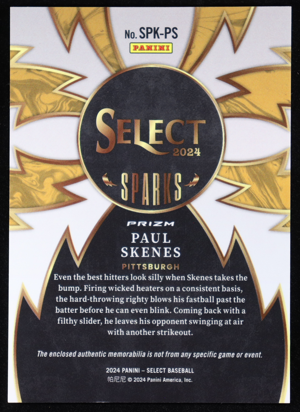 Paul Skenes 2024 Select Sparks Materials Prizms Flash #13 RC
