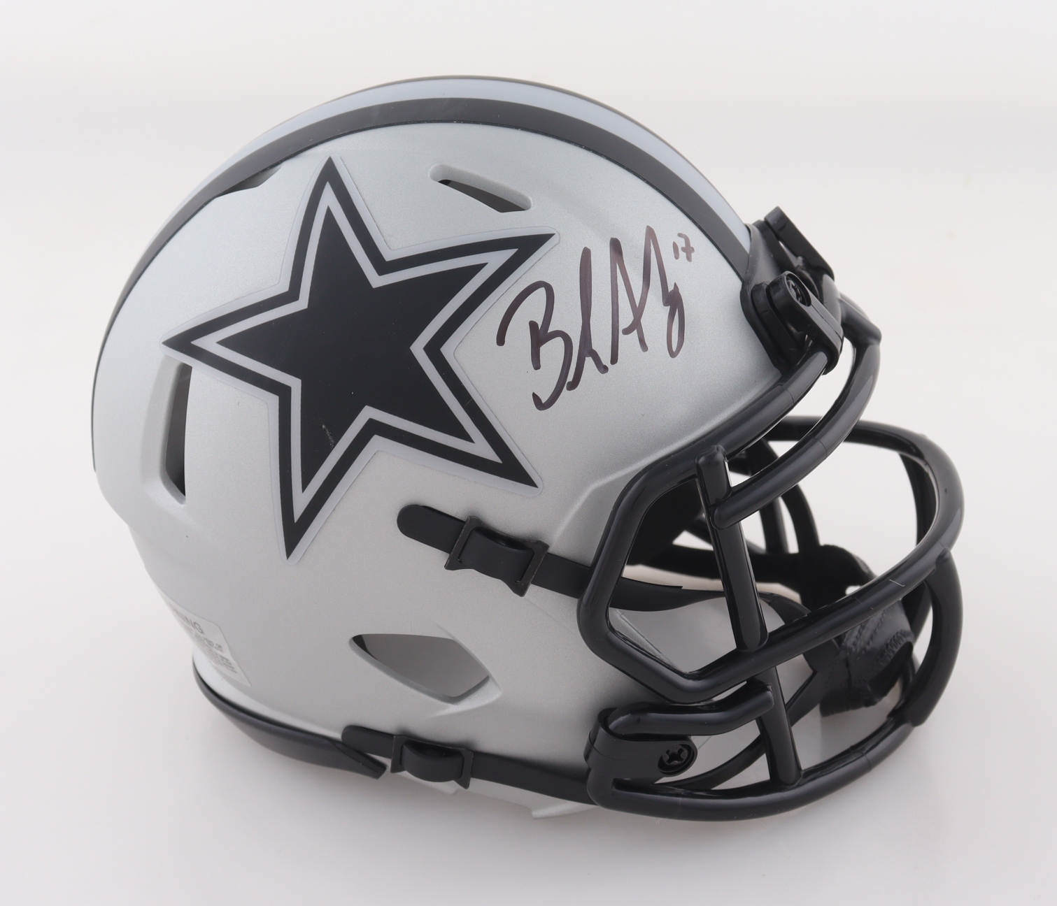 Riddell Dallas Cowboys Rave Alternate Speed Mini Helmet has been hand-signed by Brandon Aubrey.