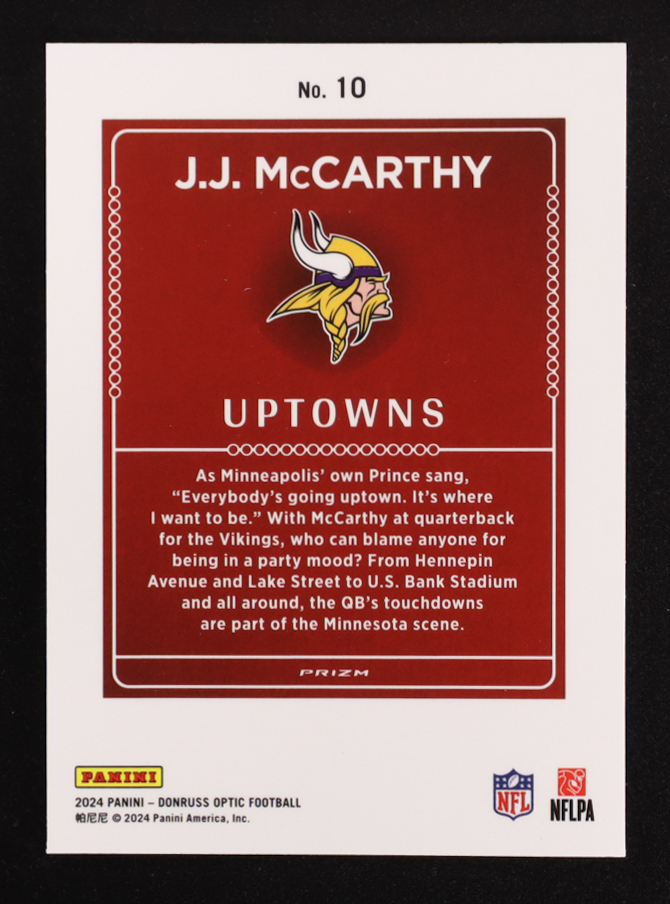 JJ McCarthy 2024 Donruss Optic Uptowns #10 RC