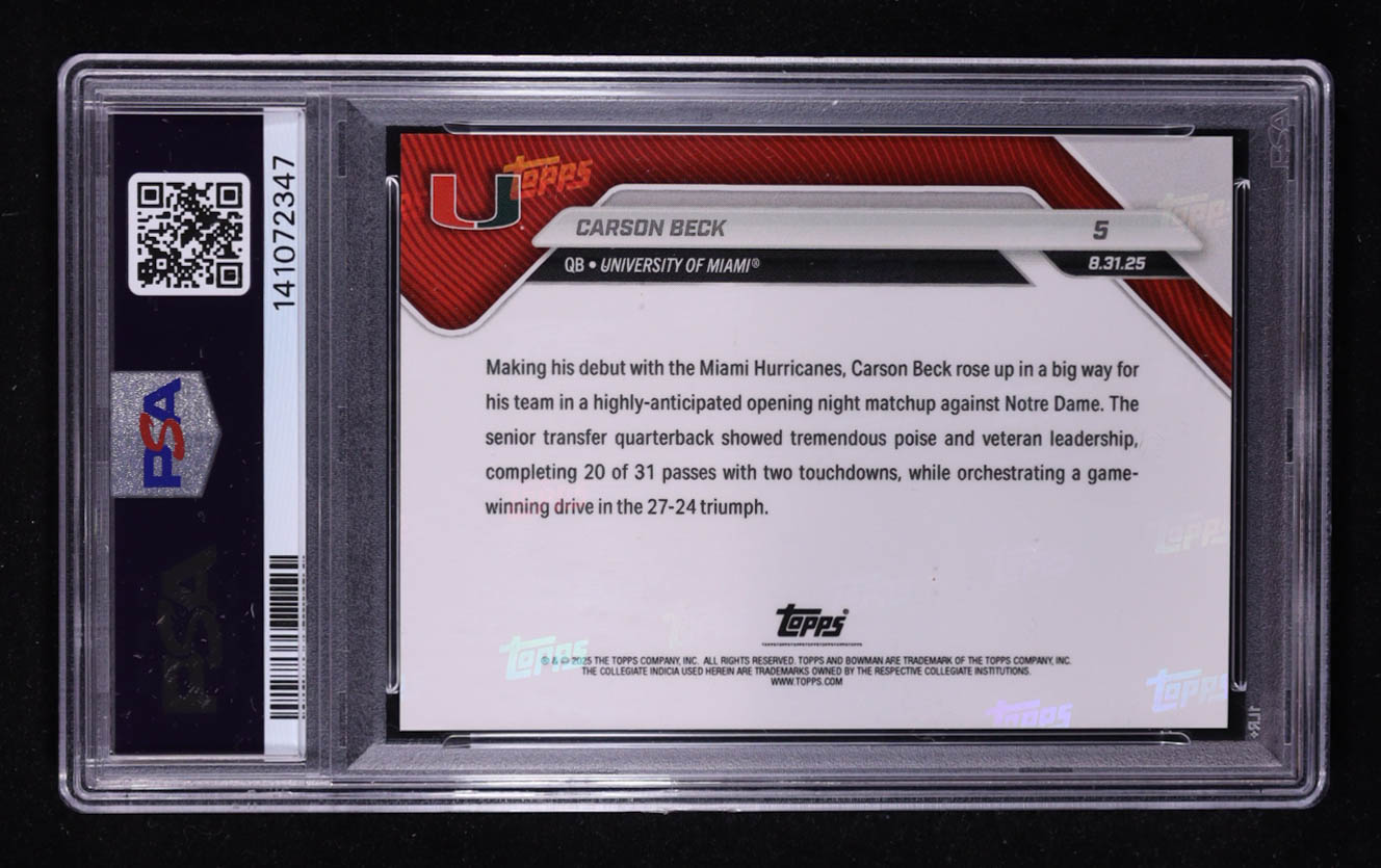 Carson Beck 2025 Bowman U Now #5 RC (PSA 9)