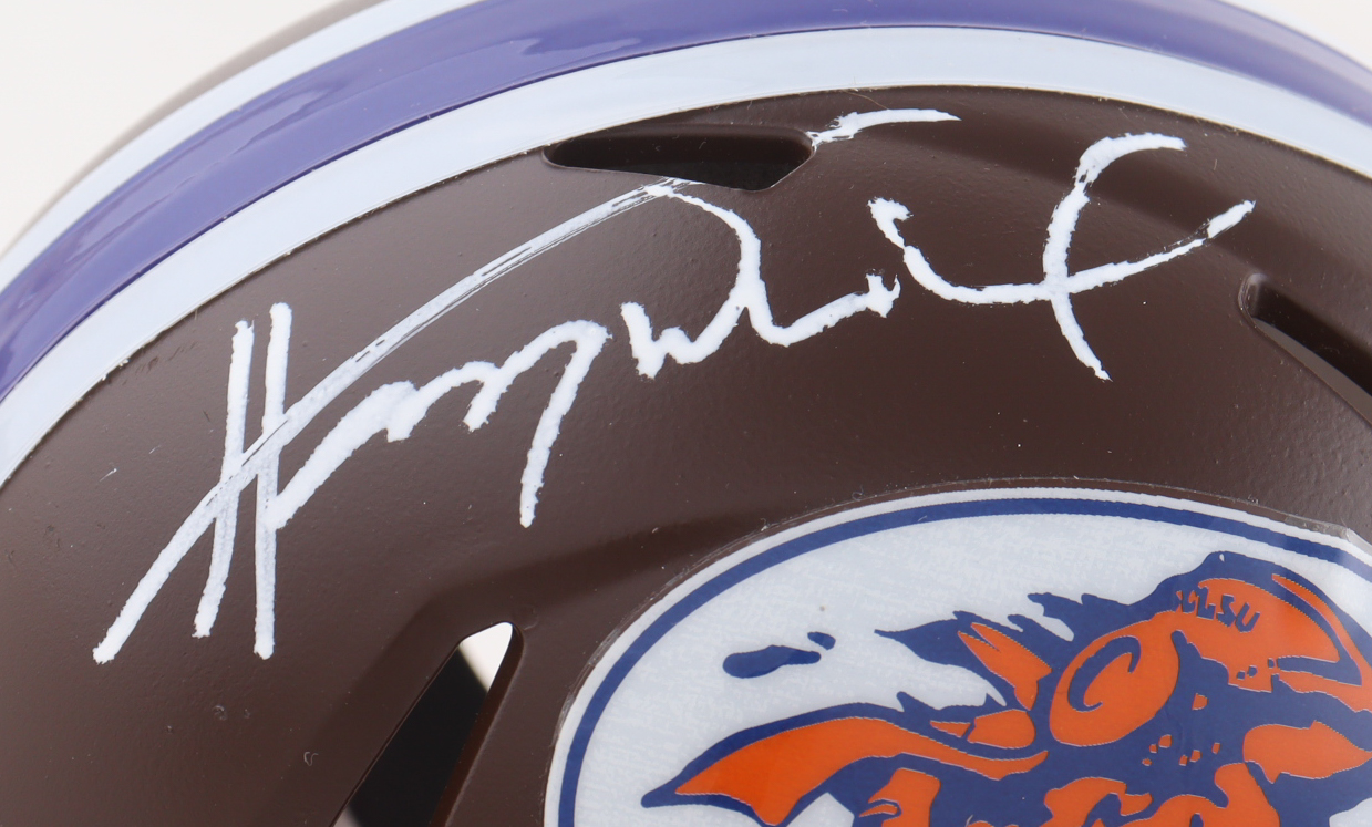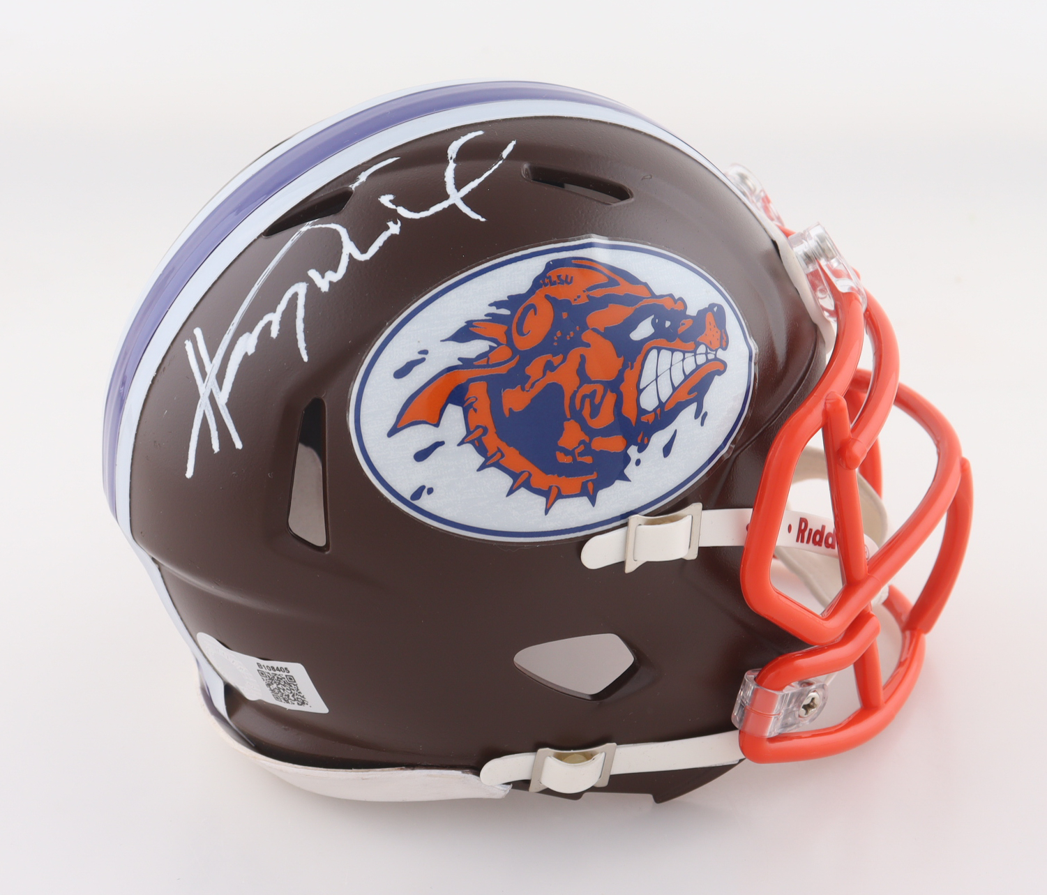 Schutt SCLSU Mud Dogs mini helmet has been hand-signed by Henry Winkler (Coach Klein). Please note, signature has been smudged and scuffed.