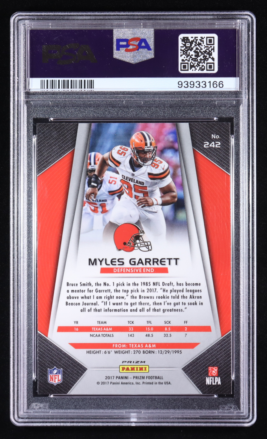 Myles Garrett 2017 Panini Prizm Prizms Disco #242 RC (PSA 10)