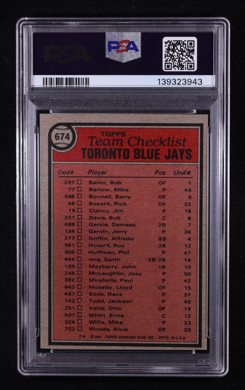 1981 Topps Blue Jays Team #674 Manager Bobby Mattick / Checklist on back (PSA 9)