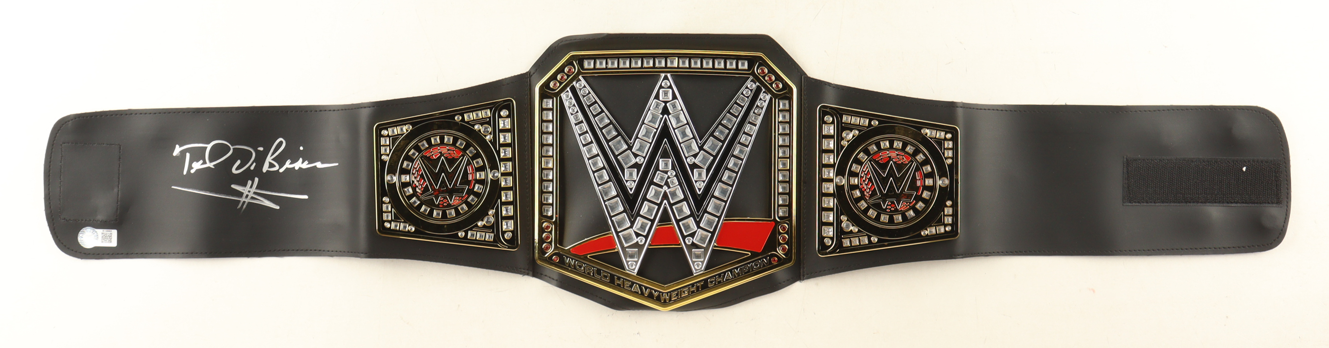 Replica WWE Championship Belt (plastic) measures 38" in size and has been hand-signed by Ted DiBiase (HOF).