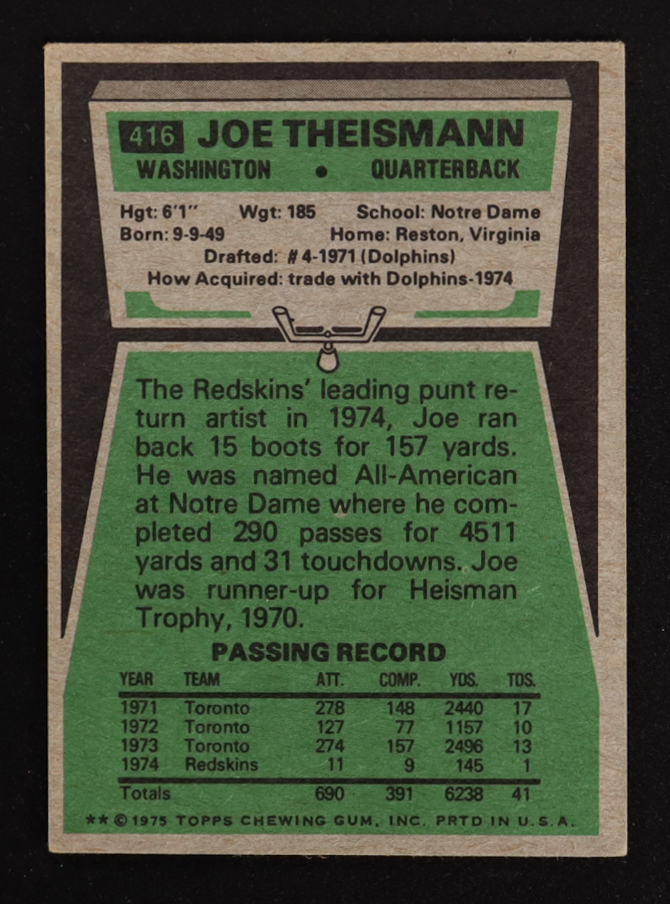 Please see photos for more details regarding the condition of the card (Washington Redskins).
