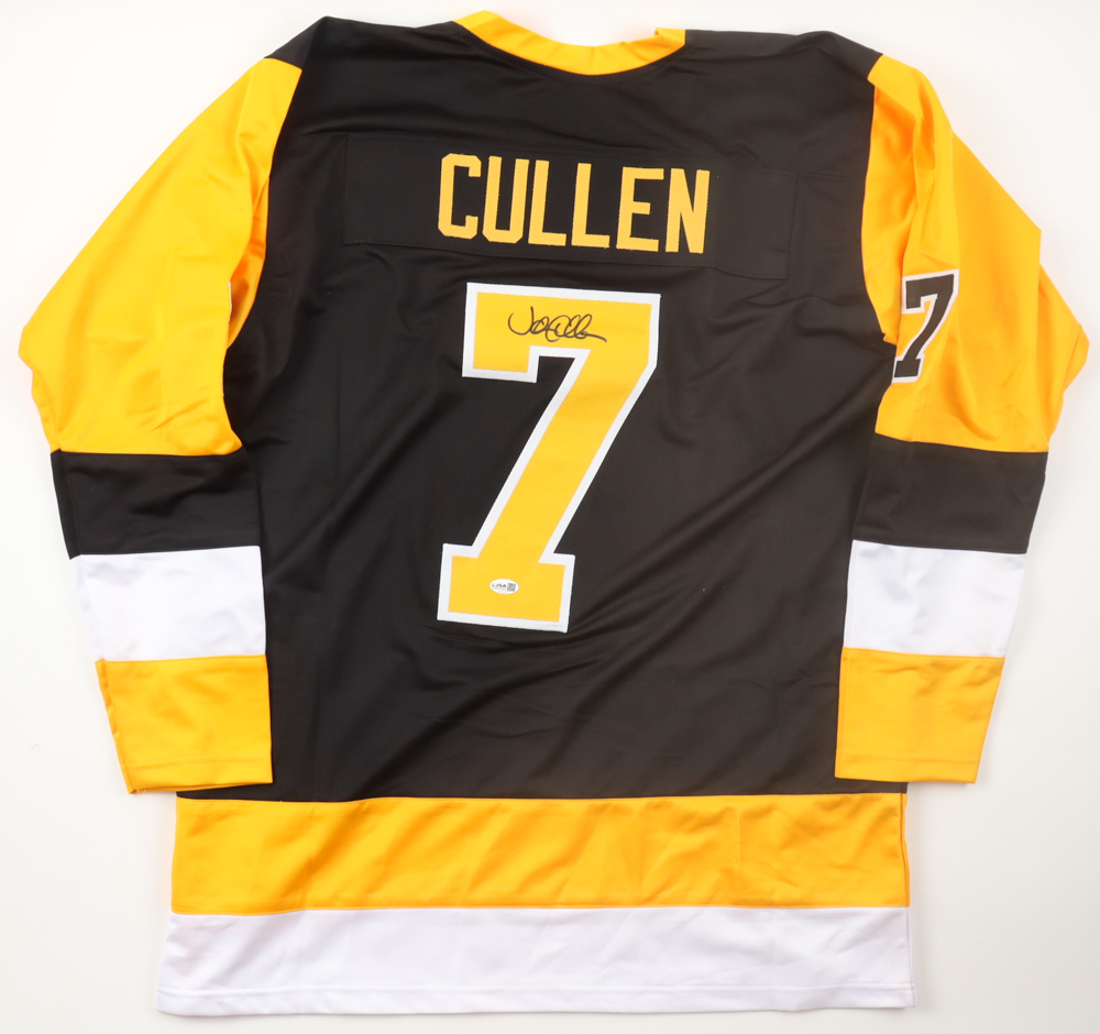 Custom jersey with everything sewn on, size XL. Hand-signed by John Cullen.